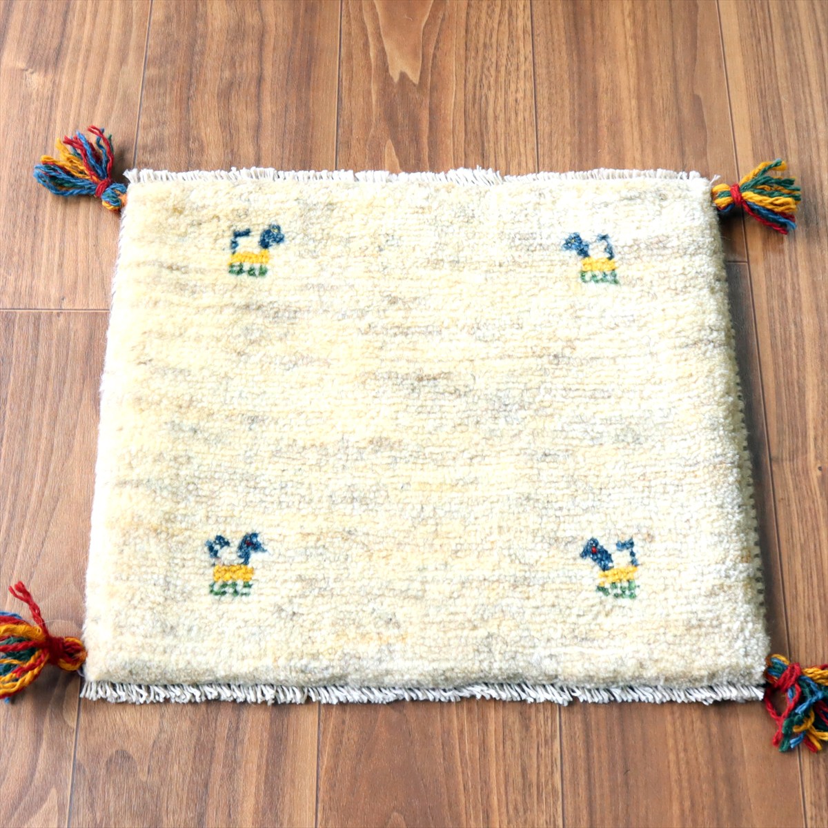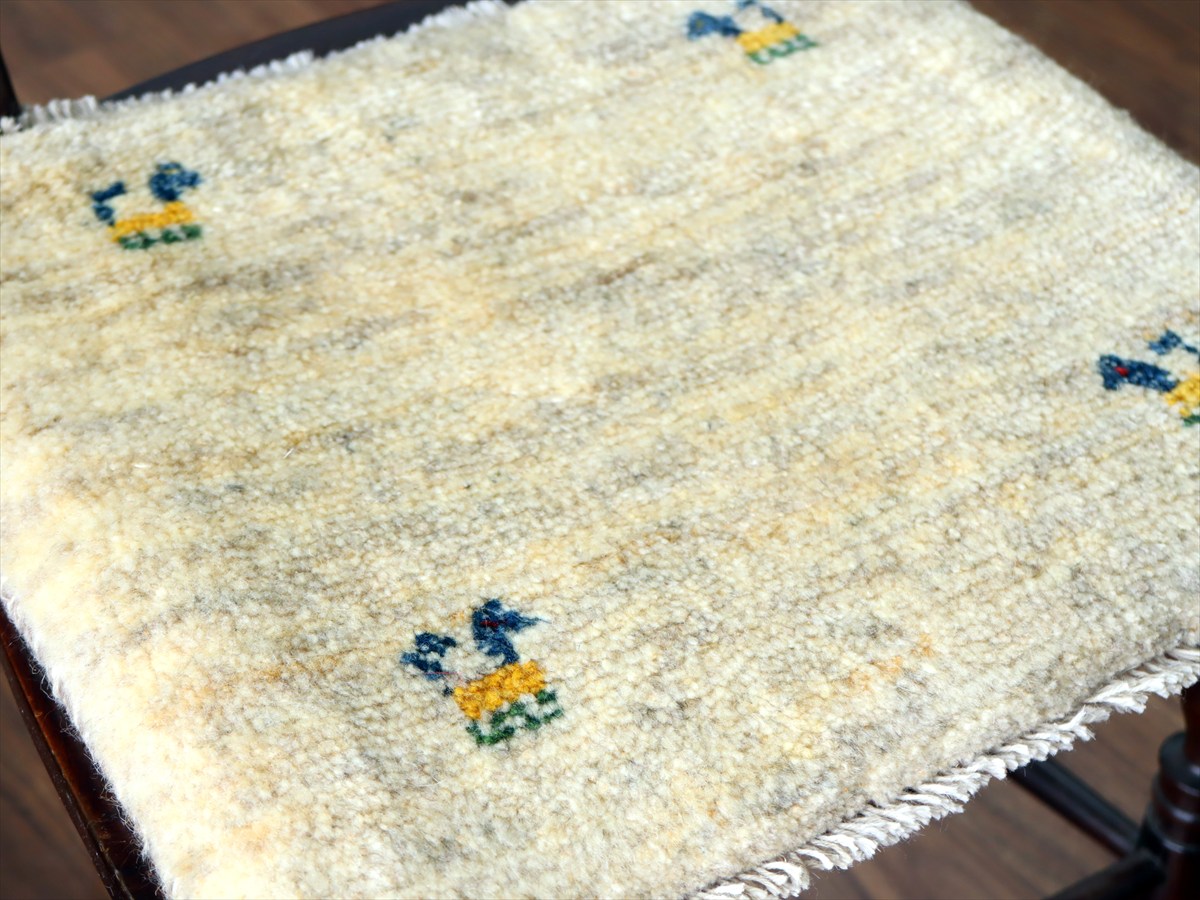 ギャッベ イラン産手織り 座布団サイズ 38×44cm ナチュラルアイボリー 動物モチーフ