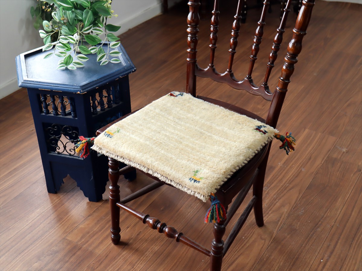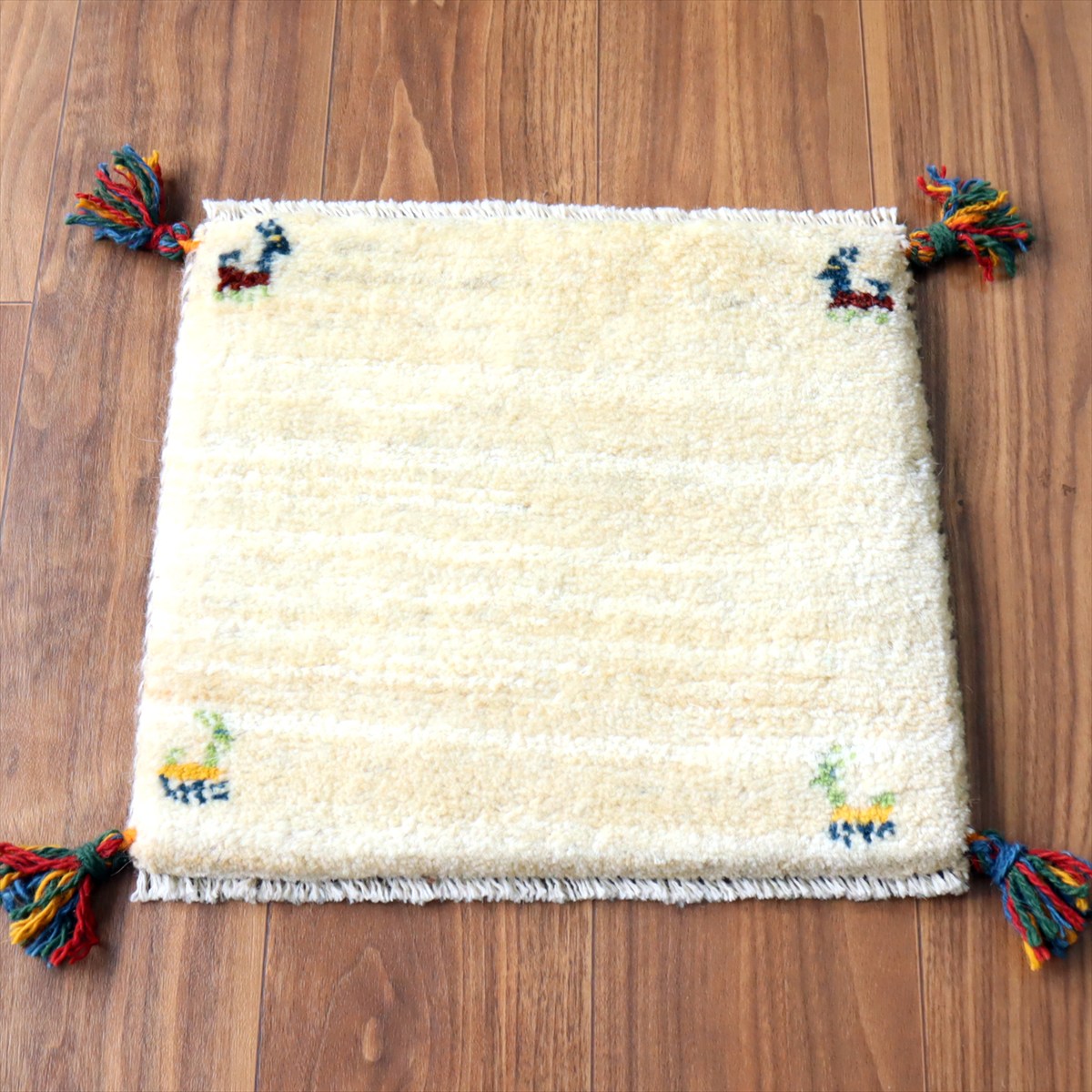 ギャッベ イラン産手織り 座布団サイズ 37×40cm ナチュラルアイボリー 動物モチーフ