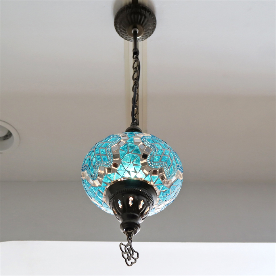 - トルコランプ モザイクランプ ペンダントランプ 直径16cm ターコイズブルー