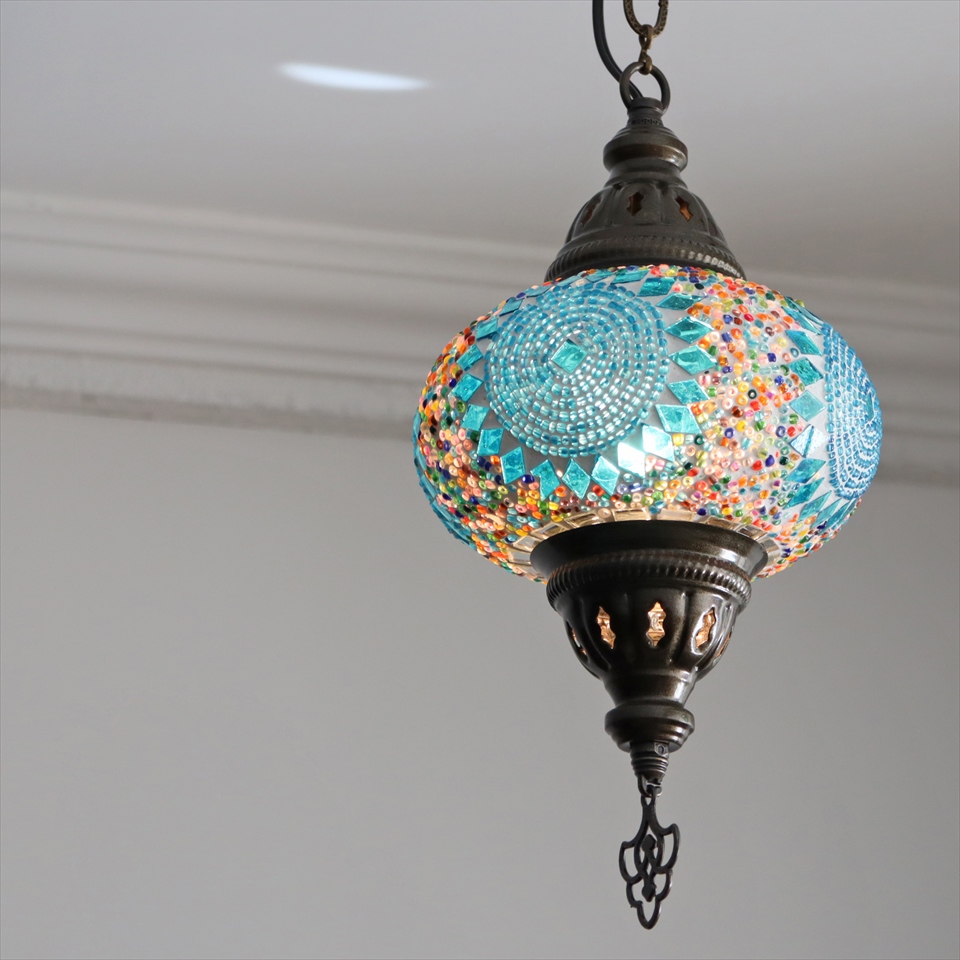 Key:トルコランプ モザイクランプ 天井照明 ガラスシェード ペンダントライト シーリングライト ランプ ライト 照明 間接照明 インテリア エスニック オリエンタル ガラスランプ 引掛けシーリング対応