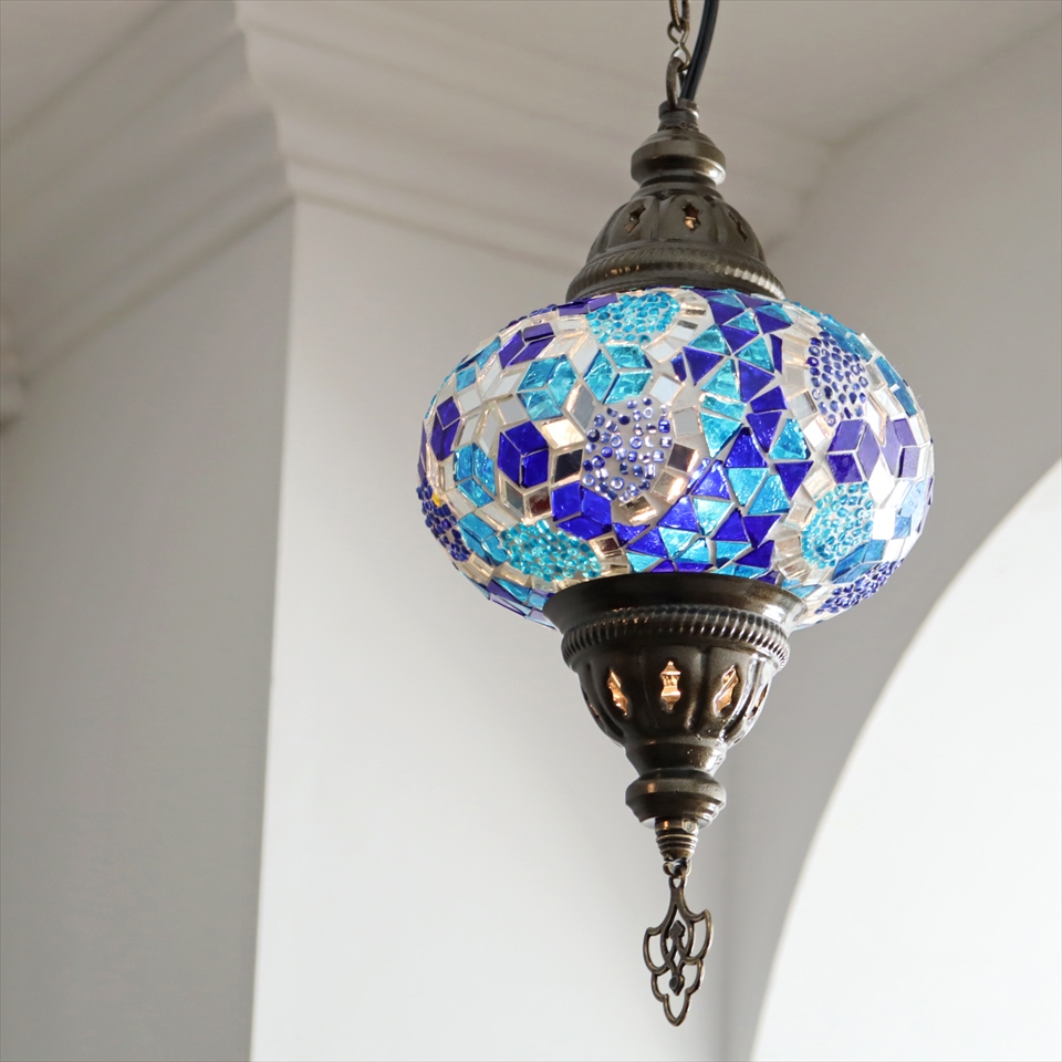 - トルコランプ モザイクランプ ペンダントランプ 直径16cm ブルー