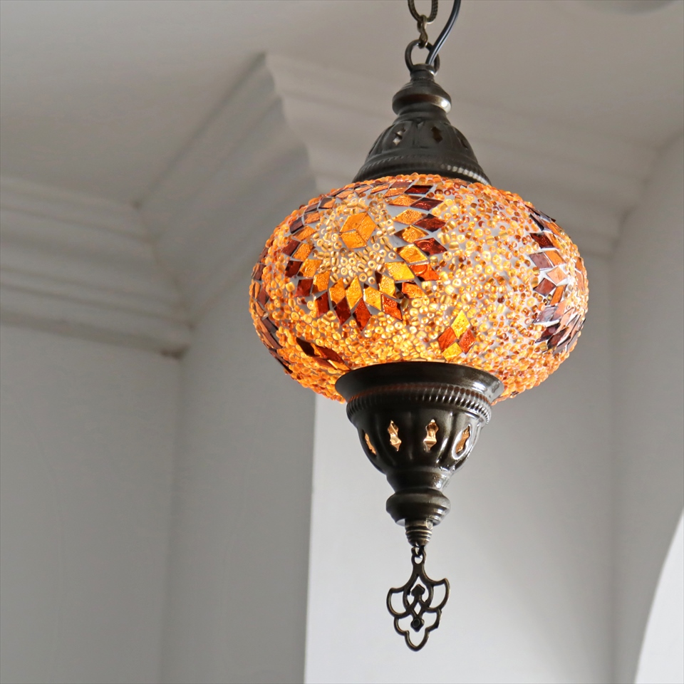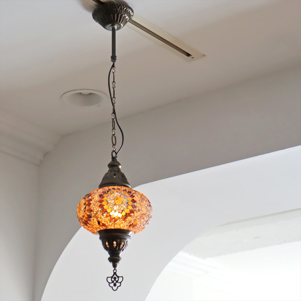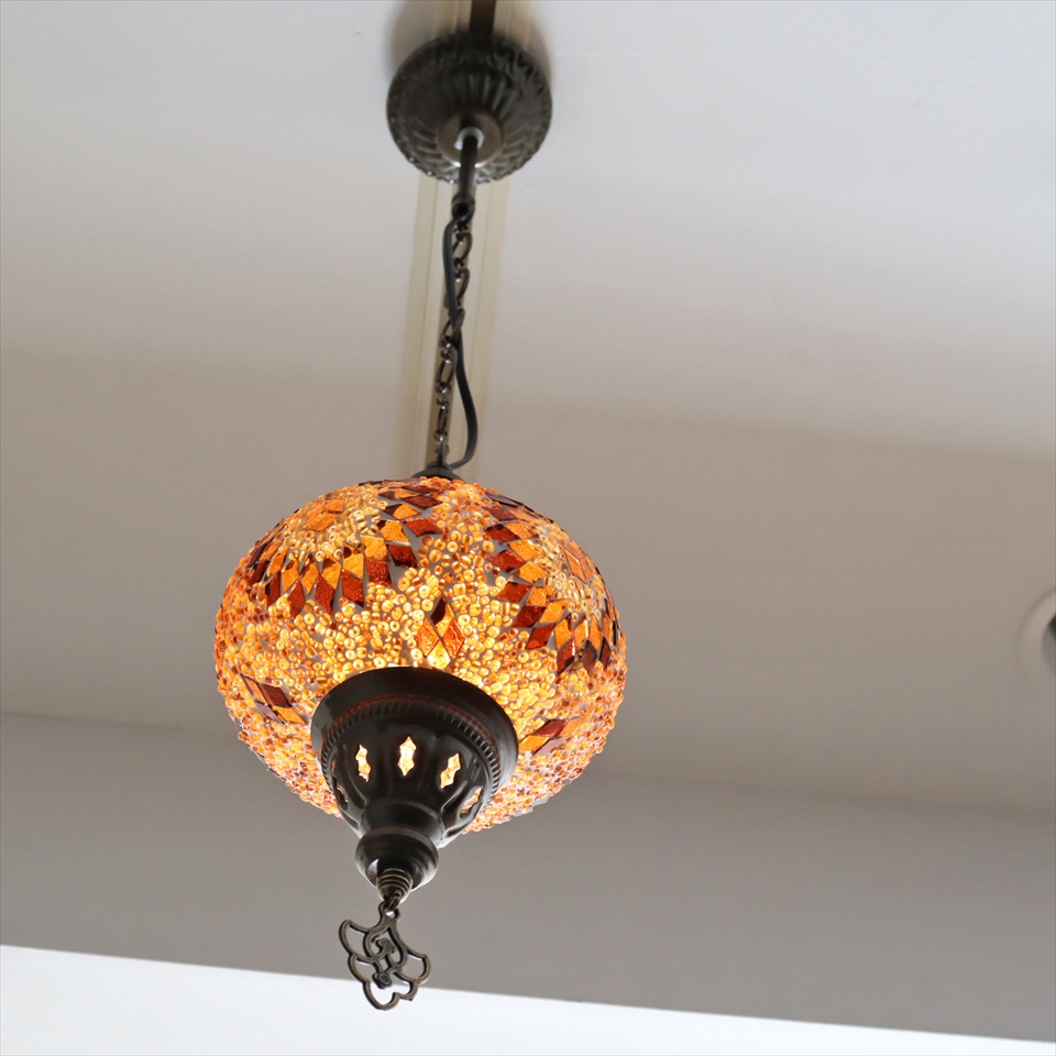 - トルコランプ モザイクランプ ペンダントランプ 直径16cm アンバー