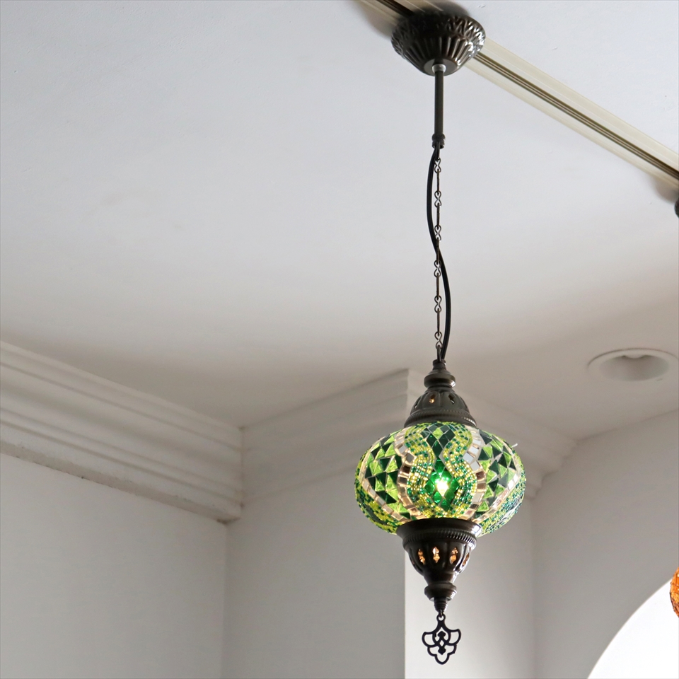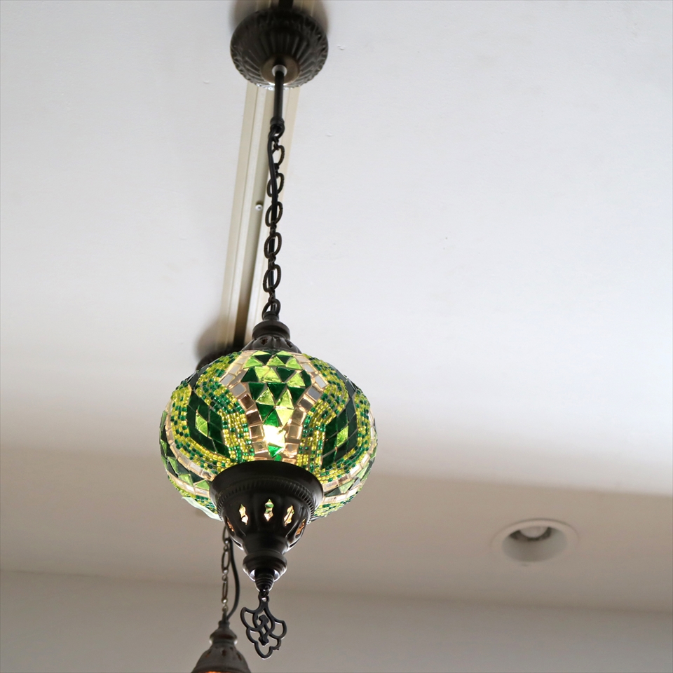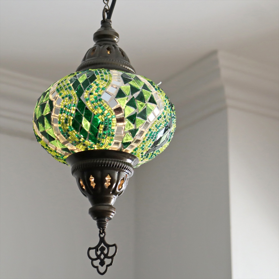- トルコランプ モザイクランプ ペンダントランプ 直径16cm グリーン