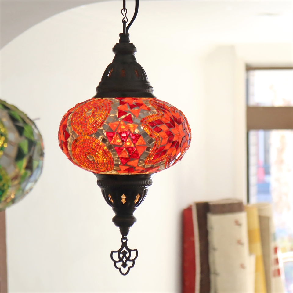 トルコランプ モザイクランプ ペンダントランプ 直径16cm オレンジ