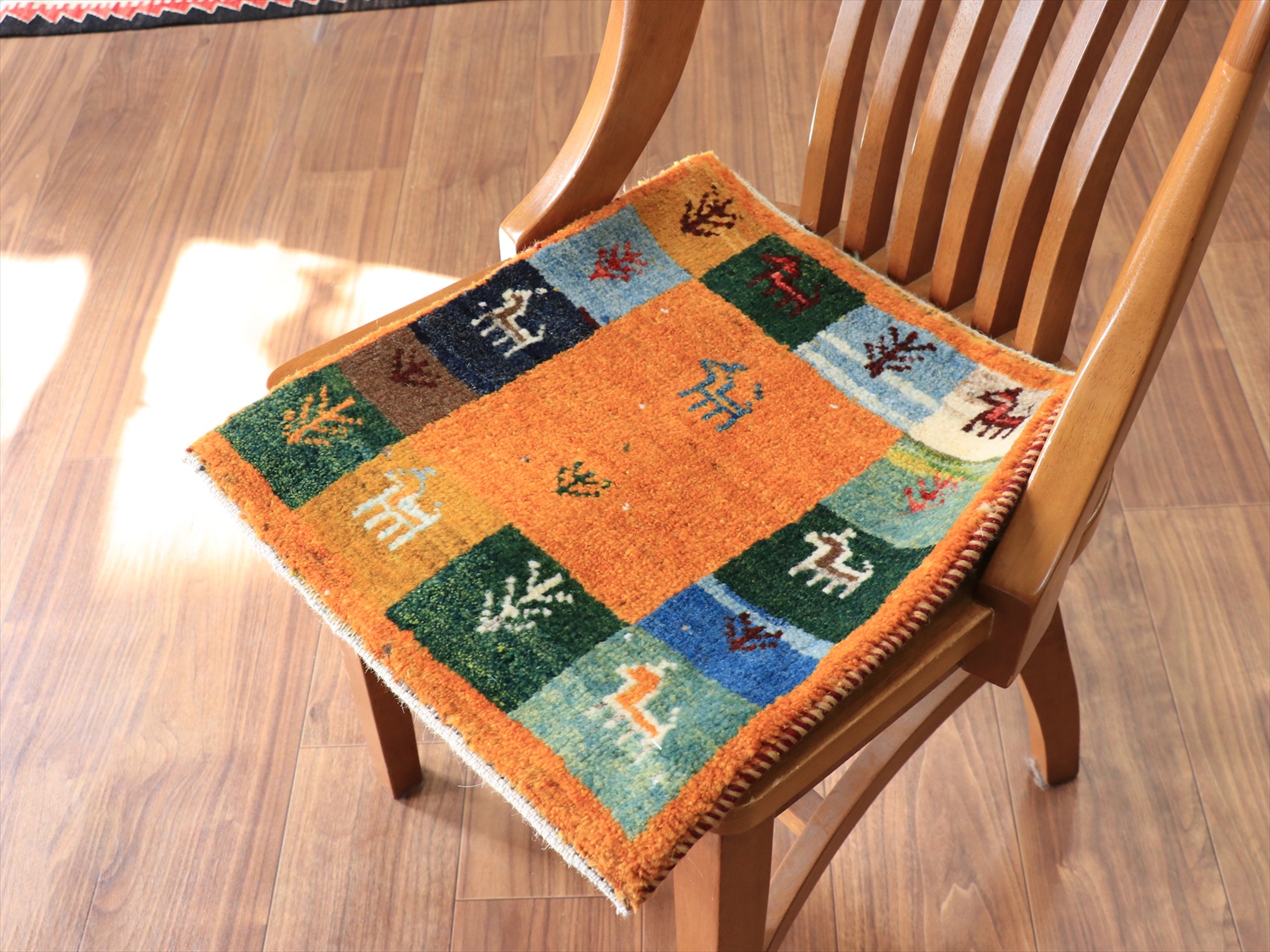 ギャッベ ノマド ミニギャッベ 45x43cm オレンジ 動物と植物
