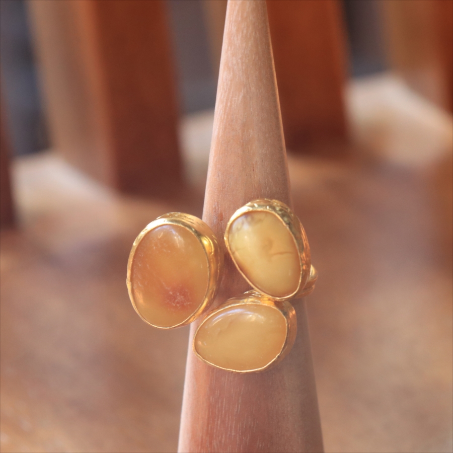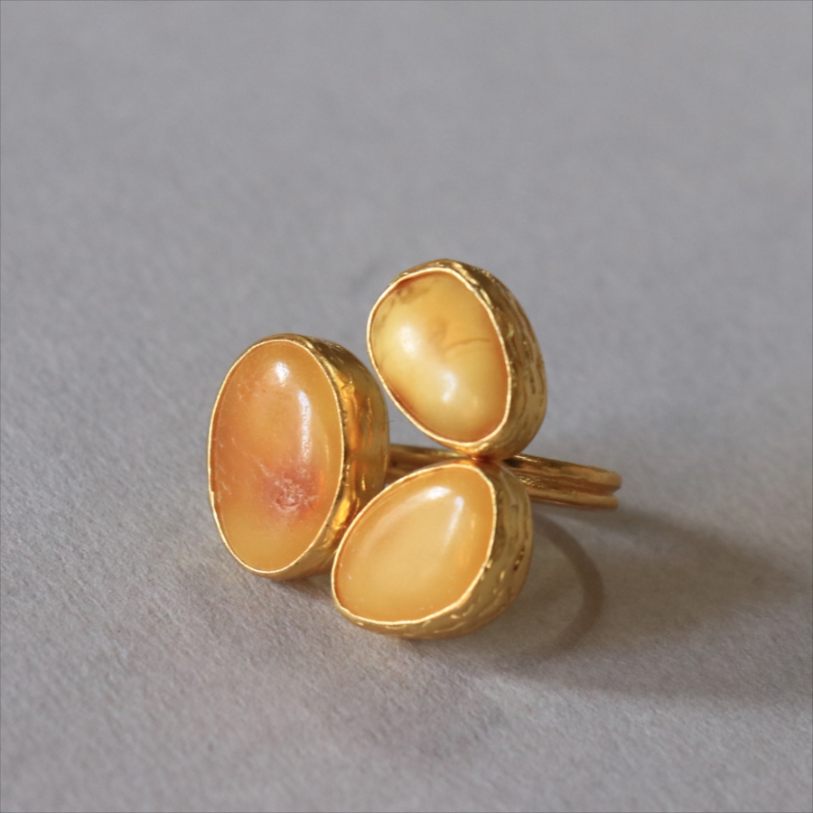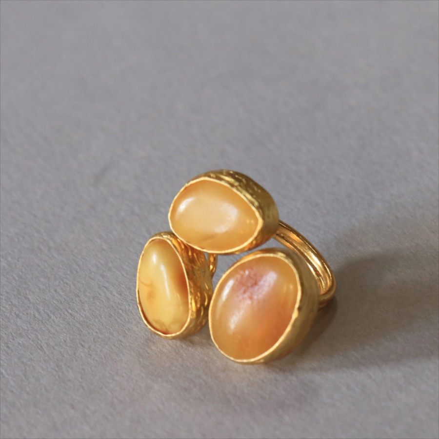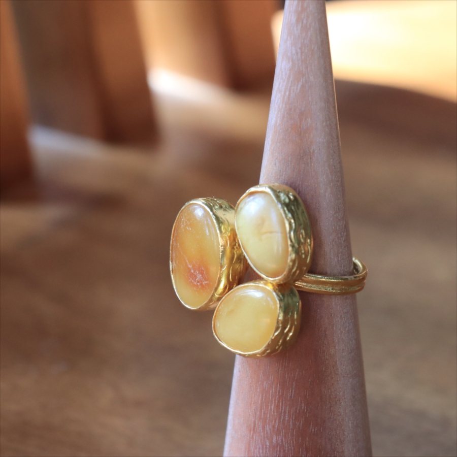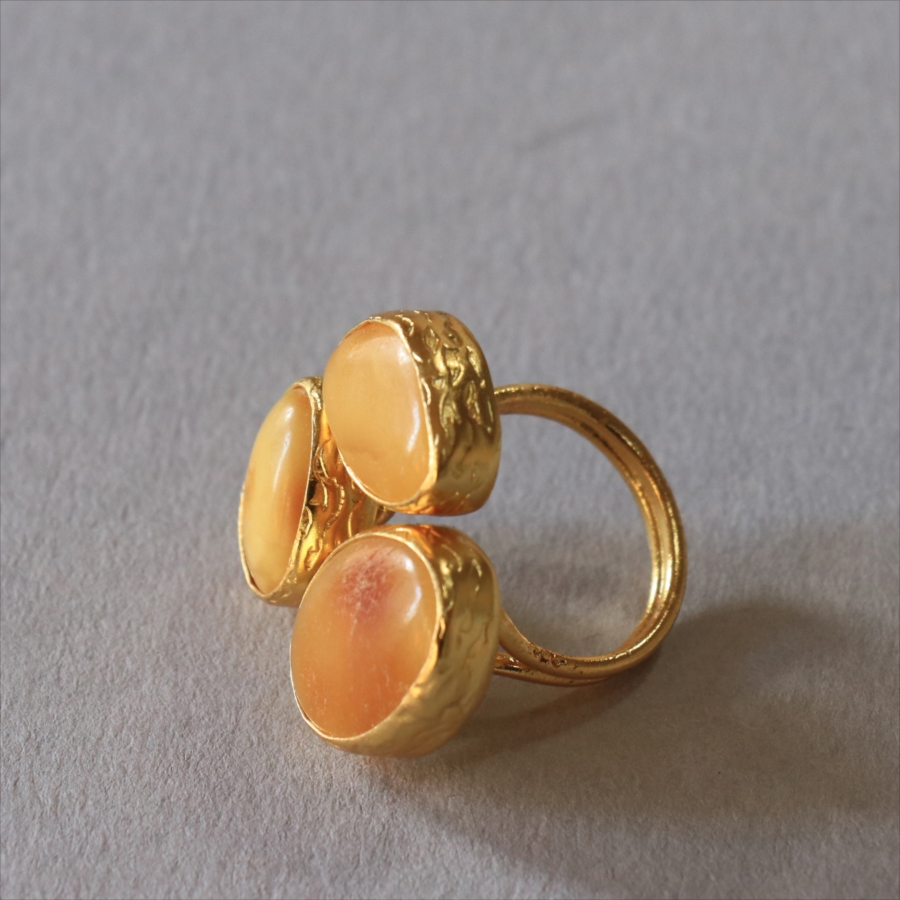 琥珀 アンバー3ストーンリング 22KGP アルサメイア トルコジュエリー 3つの石
