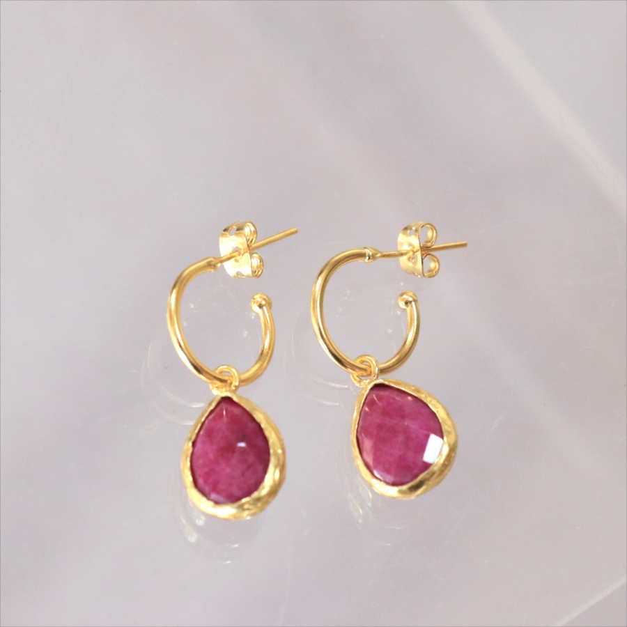 5. アルサメイア フープ ピアス 揺れるドロップ形 ルビー