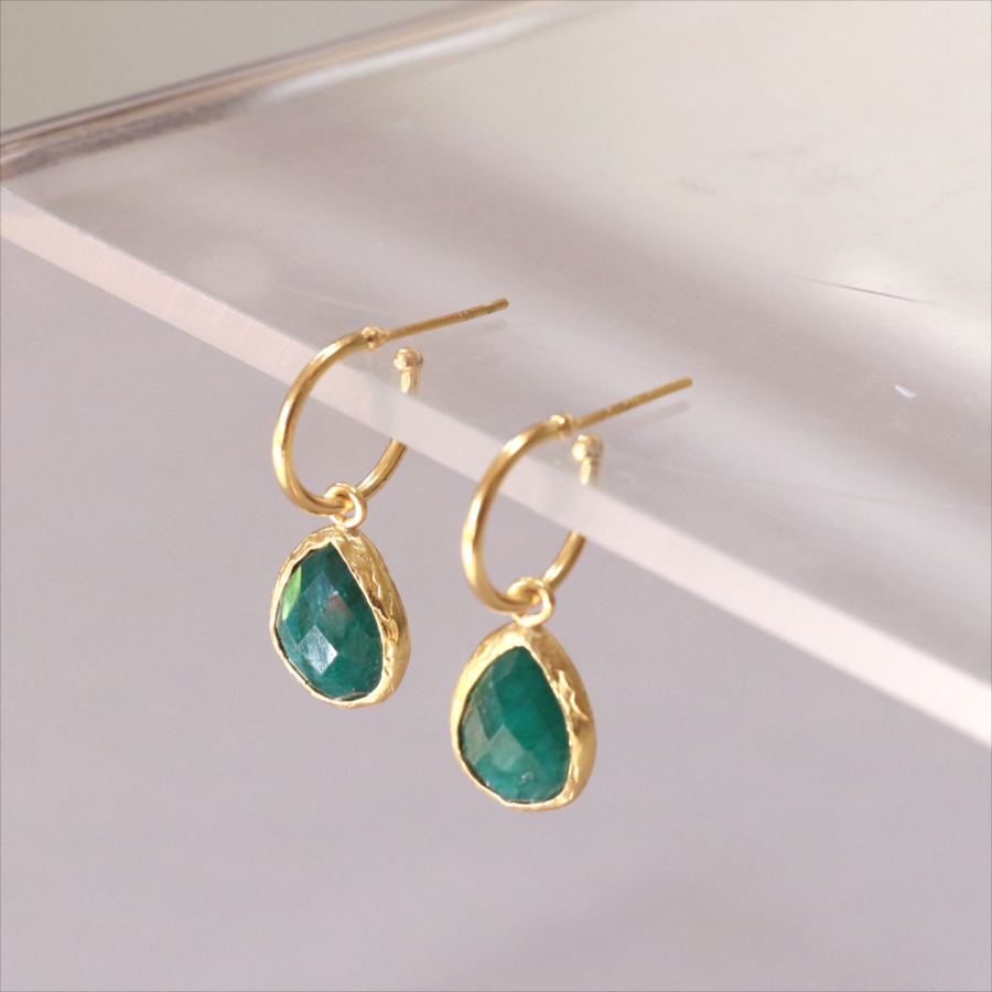 5. アルサメイア フープ ピアス 揺れるドロップ形 エメラルド