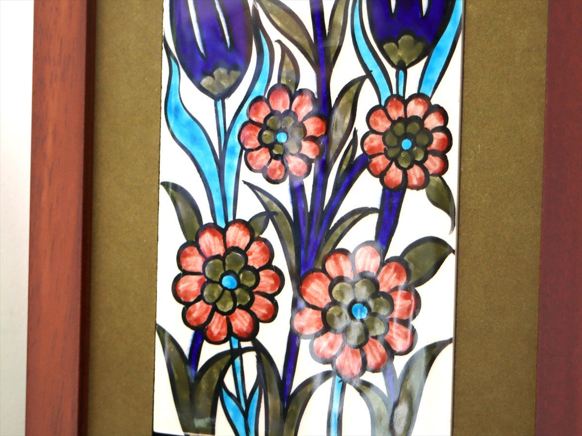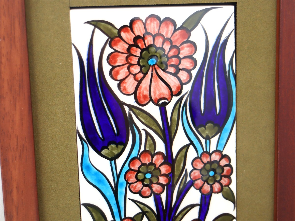 手書きタイル トルコ陶器 ミニタイル1枚額 H29×W19×D1.5cm チューリップ&カーネーション Turkish Hand Paint Tile