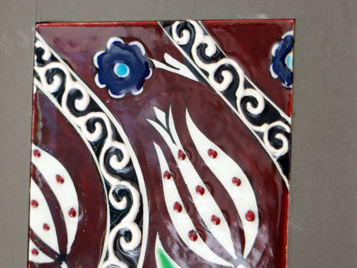 手書きタイル トルコ陶器 ミニタイル1枚額 H29×W19×D1.5cm チューリップ Turkish Hand Paint Tile