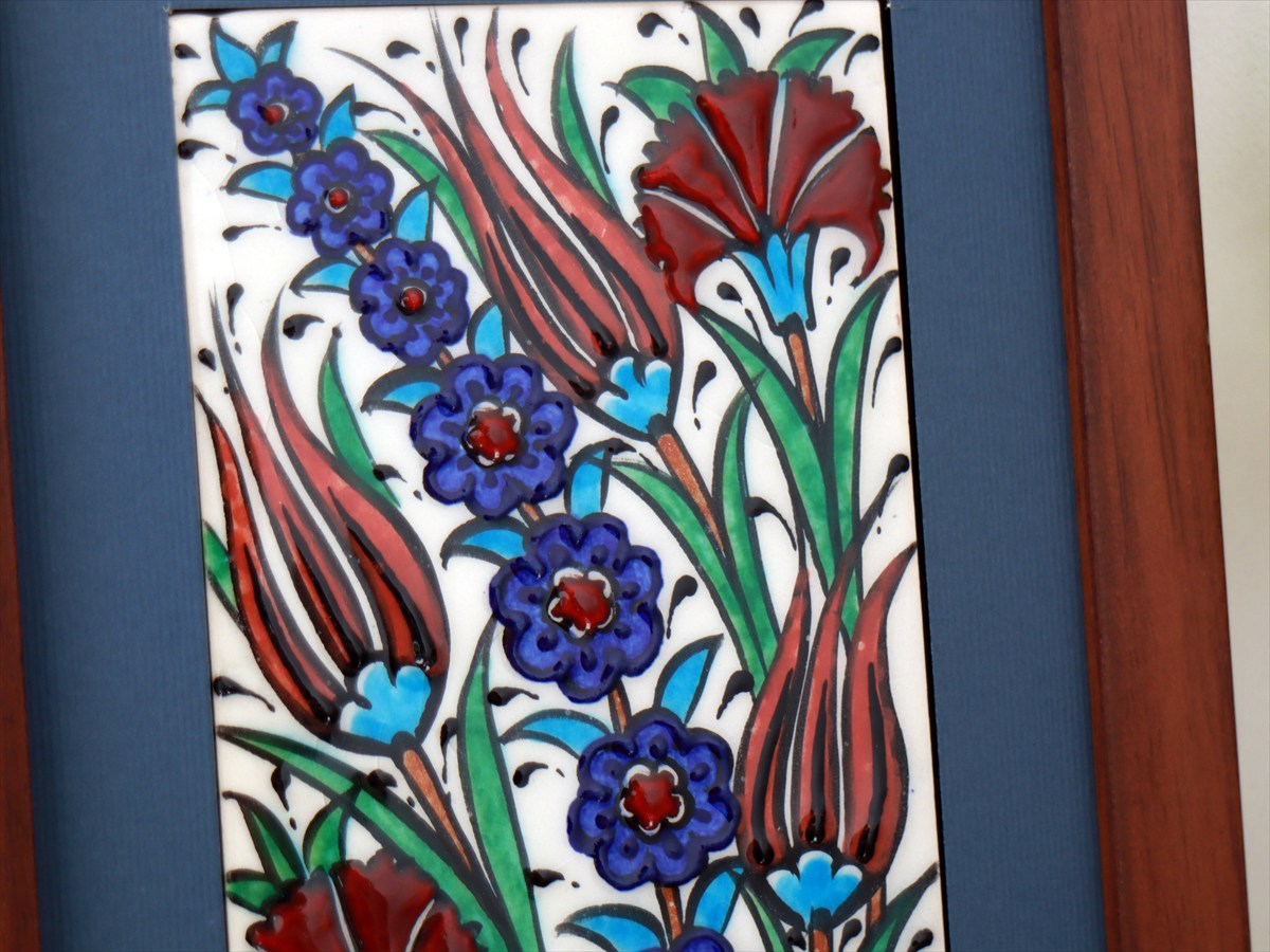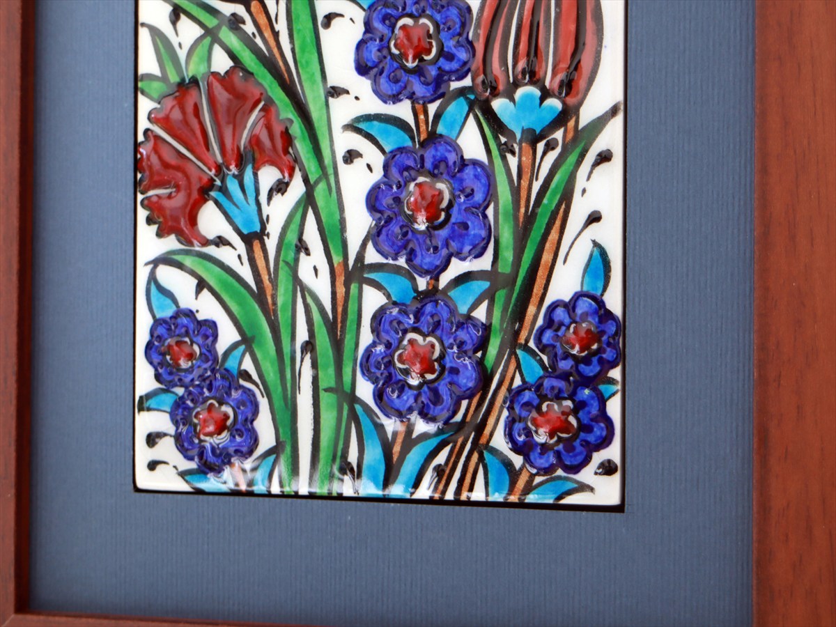 手書きタイル トルコ陶器 ミニタイル1枚額 H29×W19×D1.5cm チューリップ&カーネーション Turkish Hand Paint Tile
