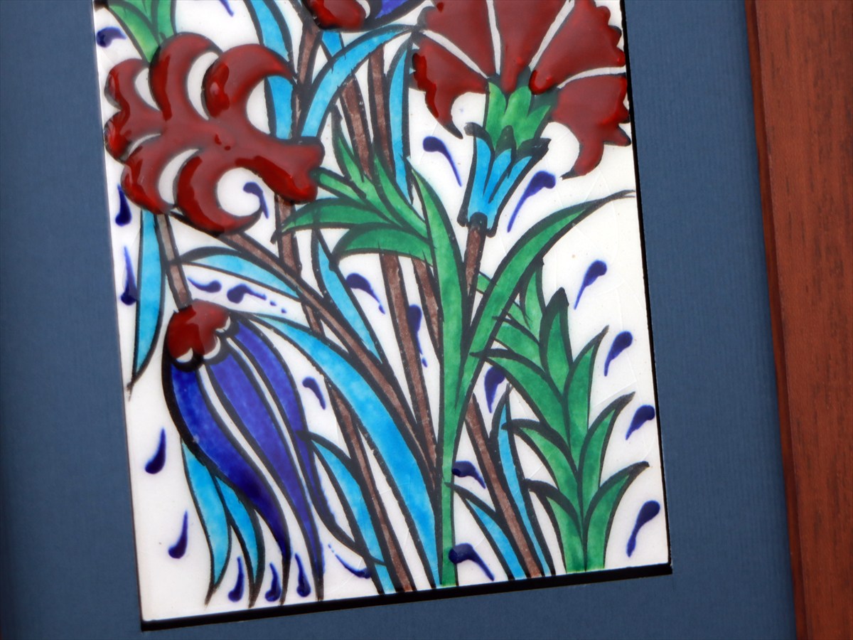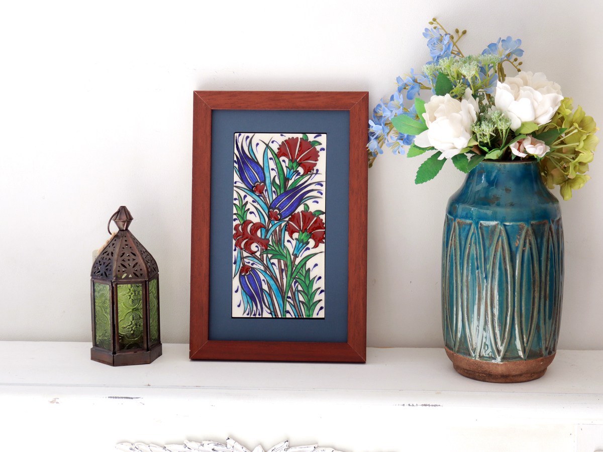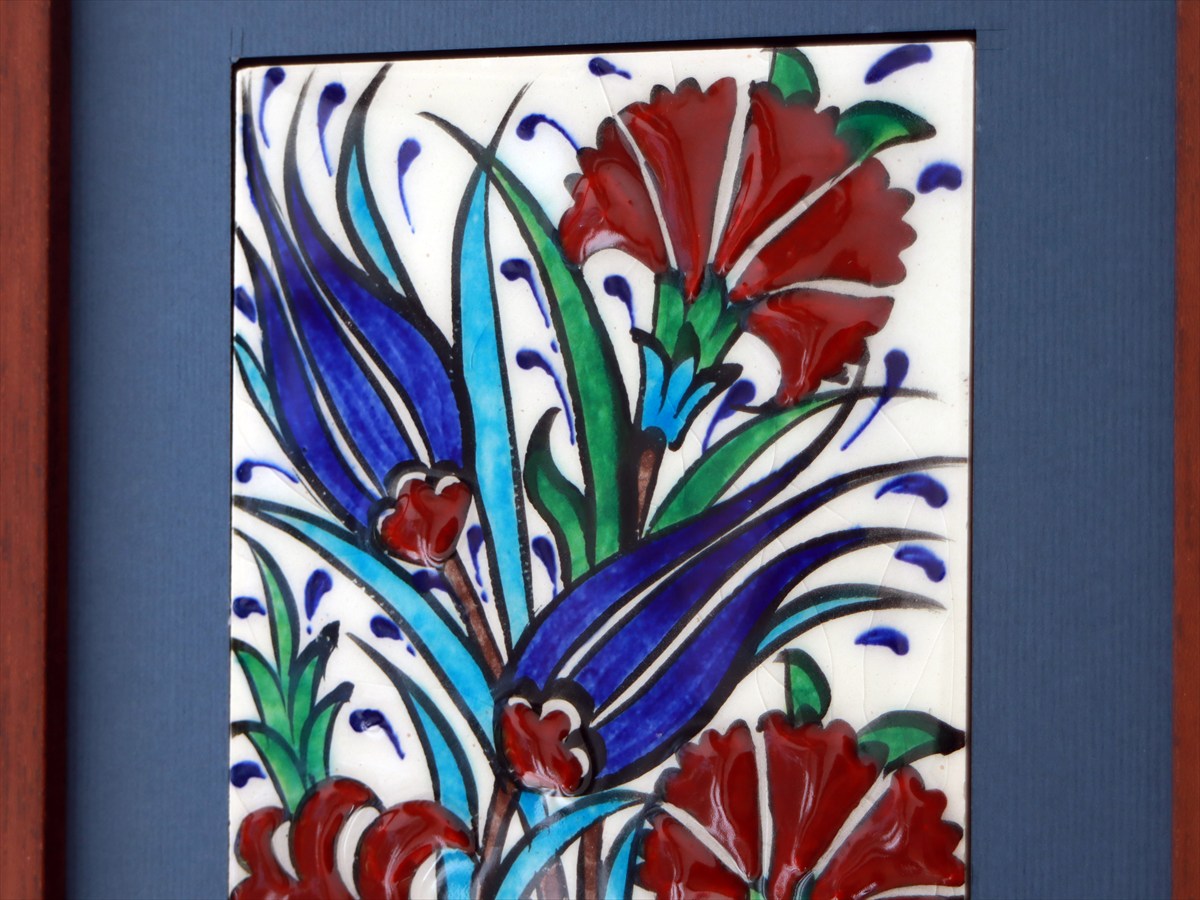 手書きタイル トルコ陶器 ミニタイル1枚額 H29×W19×D1.5cm チューリップ&カーネーション Turkish Hand Paint Tile