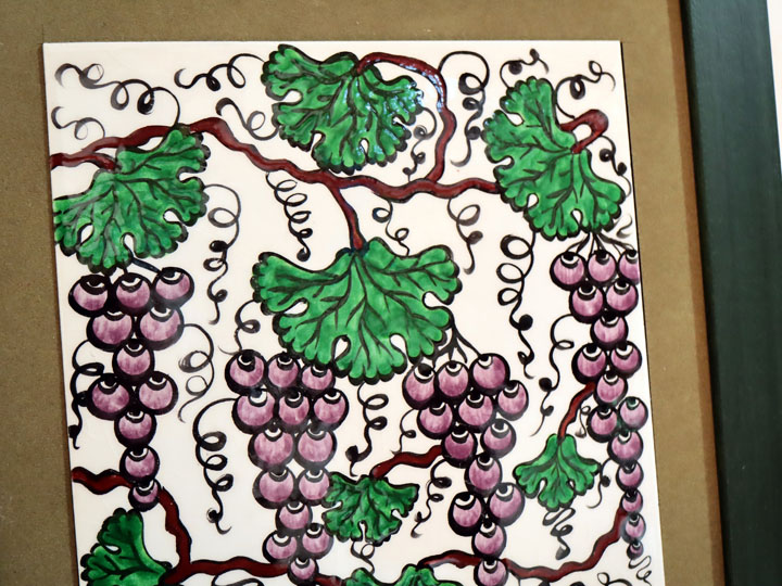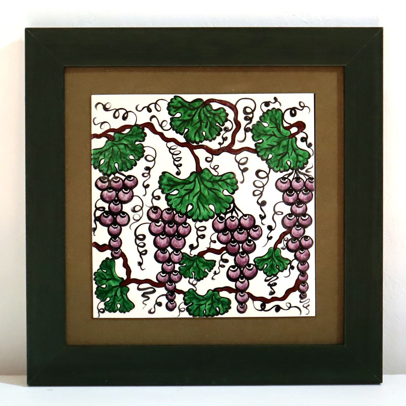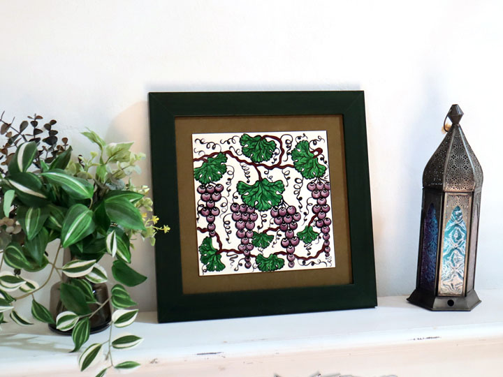 トルコ陶器 手書きタイル 1枚額 H32×W32×D1.5cm 葡萄 Turkish Hand Paint Tile