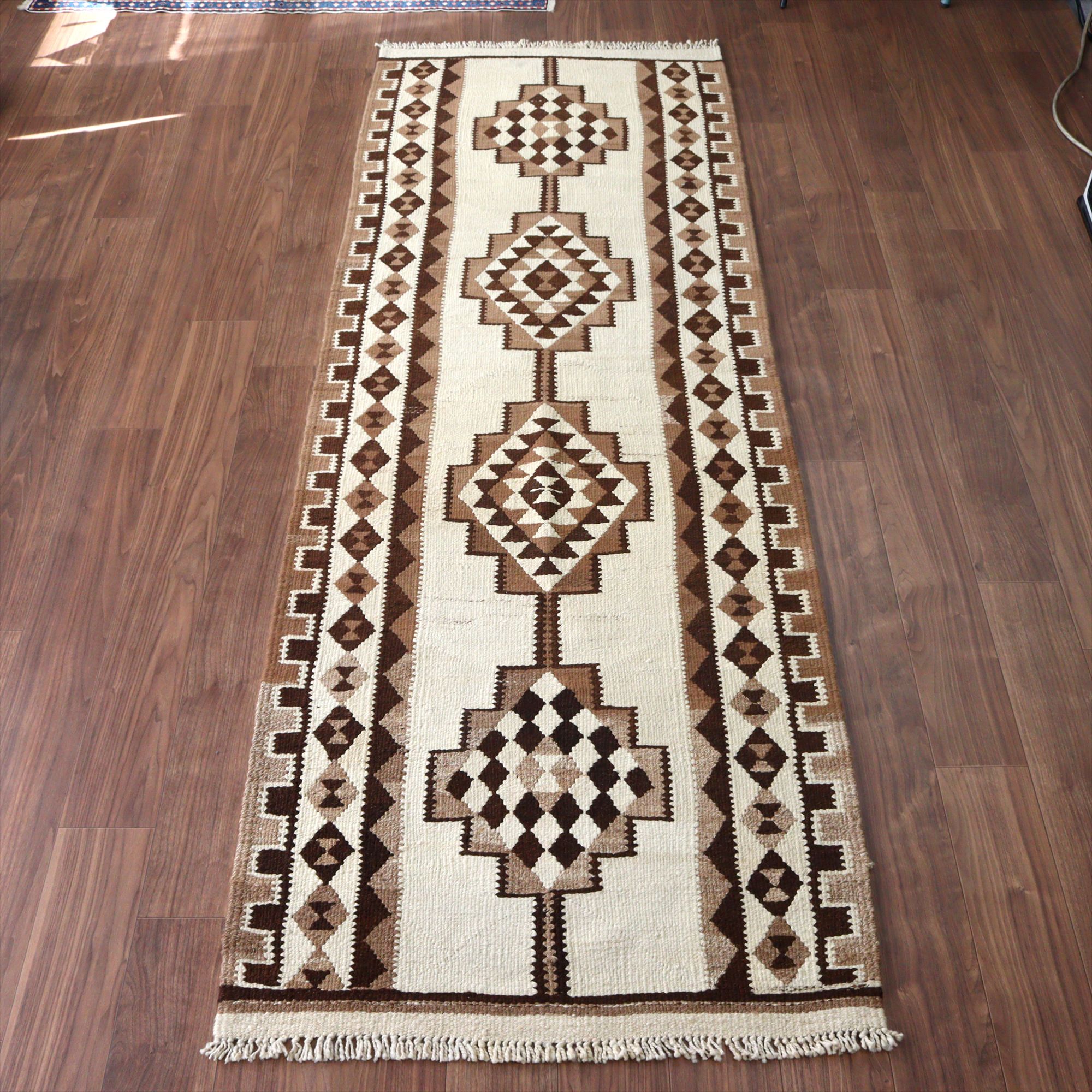 - トルコの手織りキリム カルス277×96cm メダリオンと幾何学モチーフ