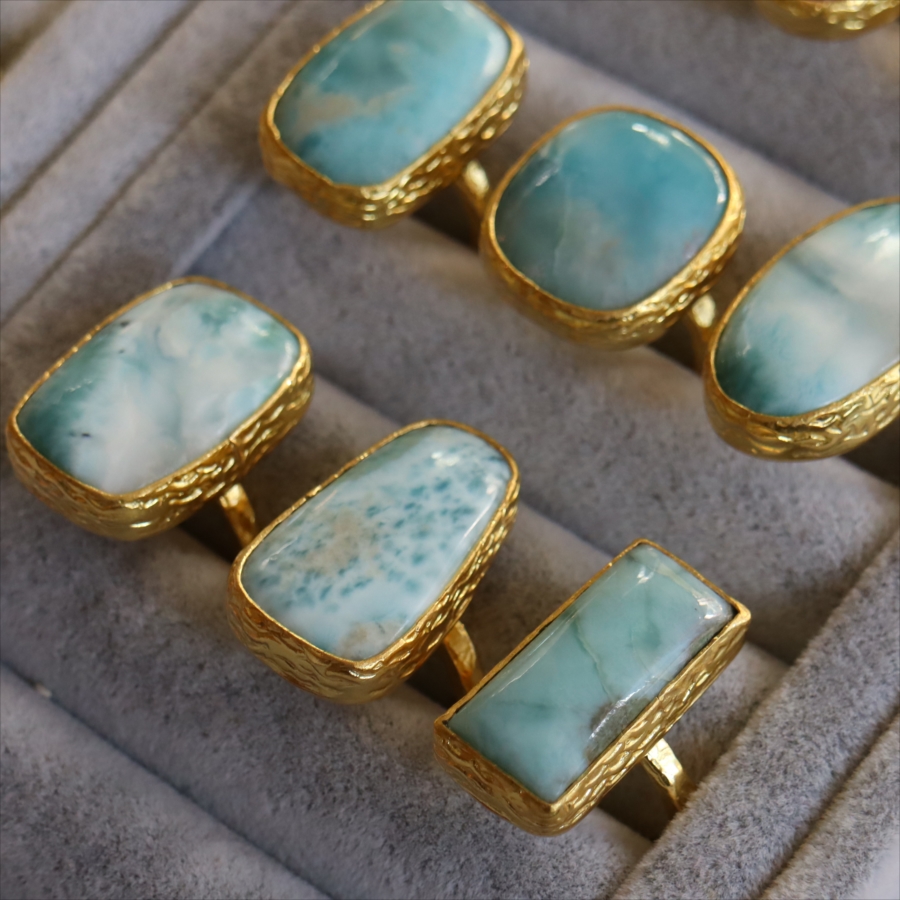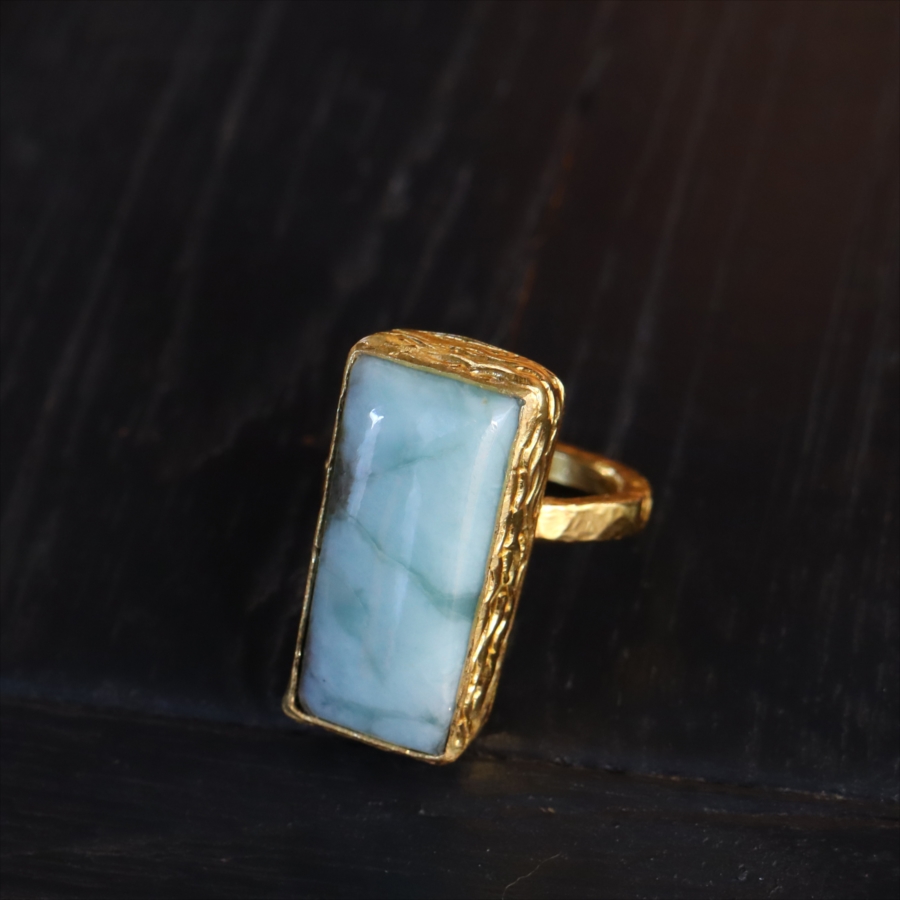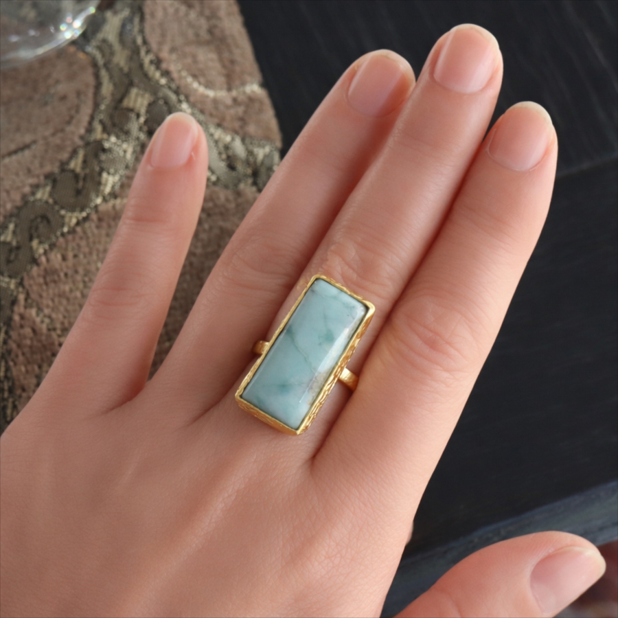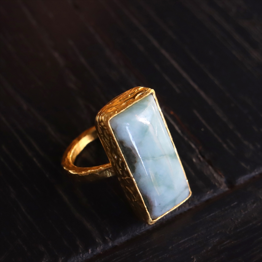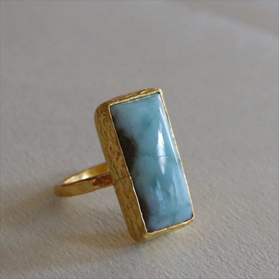 アルサメイア ラリマースクエアリング 天然石 22kゴールドプレーテッド トルコジュエリー カラーストーン