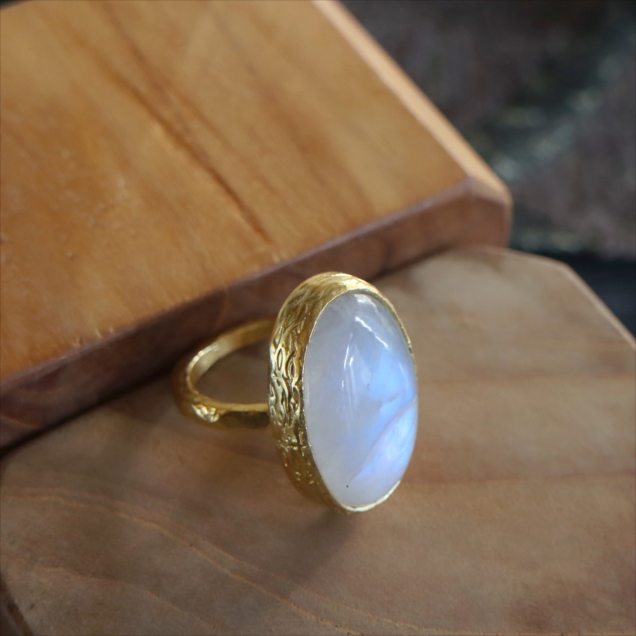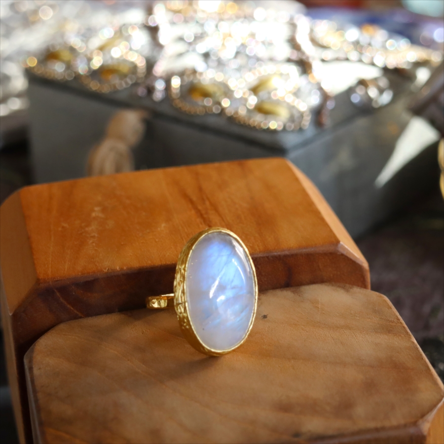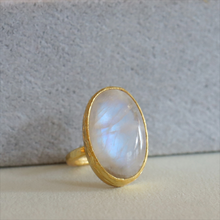 5. アルサメイア レインボームーンストーン カボションリング 天然石 22kゴールドプレーテッド トルコジュエリー カラーストーン