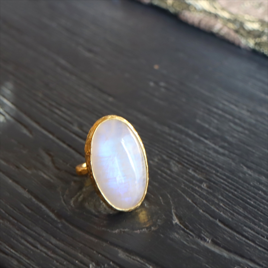 5. アルサメイア レインボームーンストーン カボションリング 天然石 22kゴールドプレーテッド トルコジュエリー カラーストーン