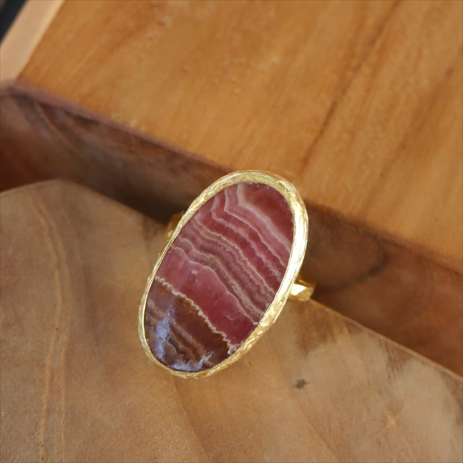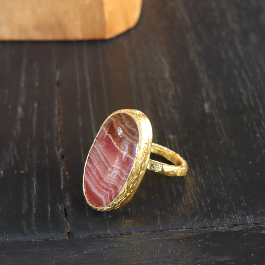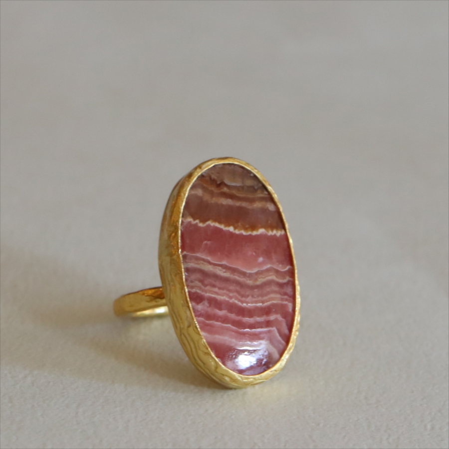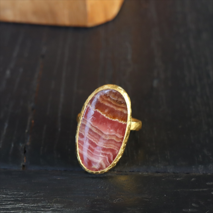 5. ロードクロサイト 大粒リング アルサメイア 天然石 22kゴールドプレーテッド トルコジュエリー カラーストーン