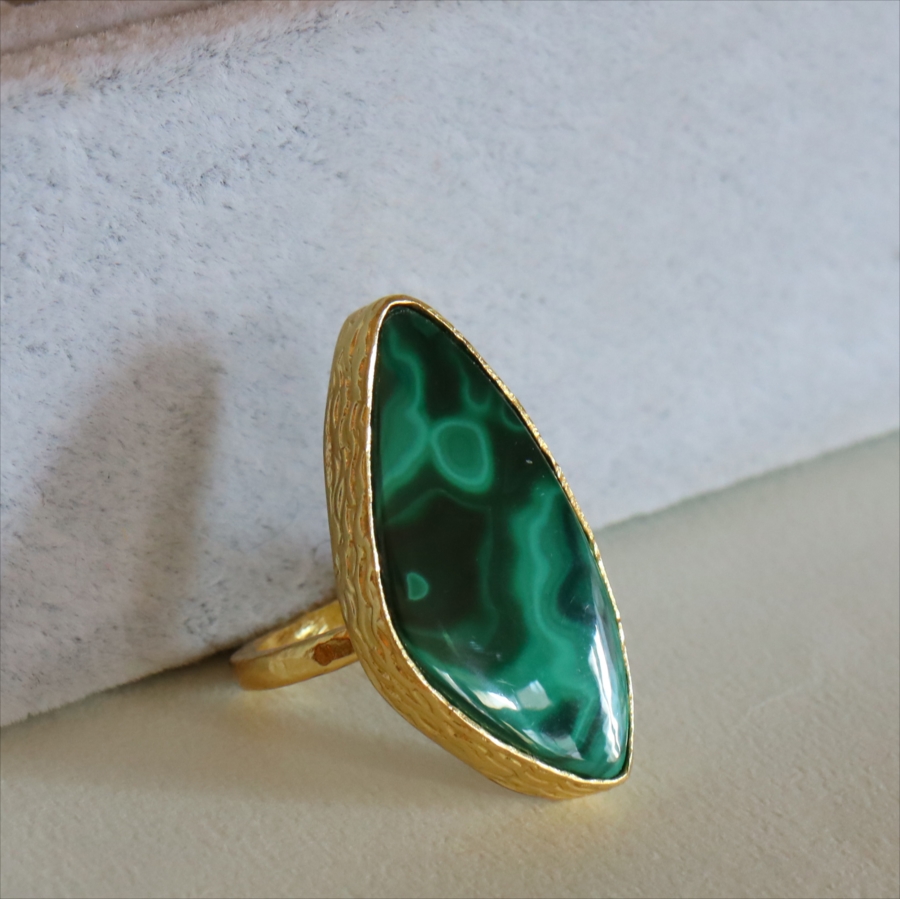 Key:Turkish Jewelry, Istanbul, Arsameia,大粒,フリーサイズリング, トルコジュエリー,天然石,イスタンブール,ハンドメイド,カラーストーン,マラカイト, 孔雀石, malachite