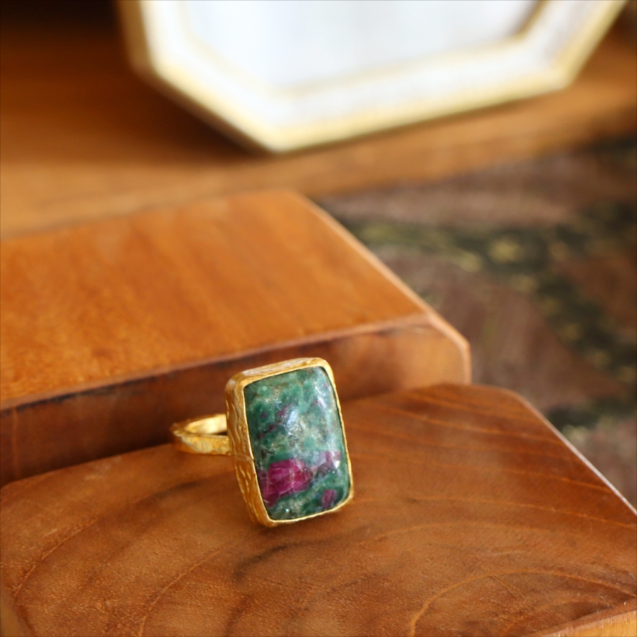 ルビーインゾイサイト リング アルサメイア 天然石 22kゴールドプレーテッド トルコジュエリー カラーストーン