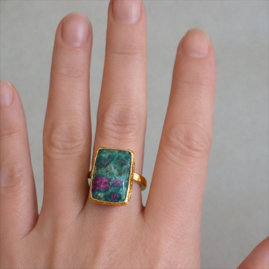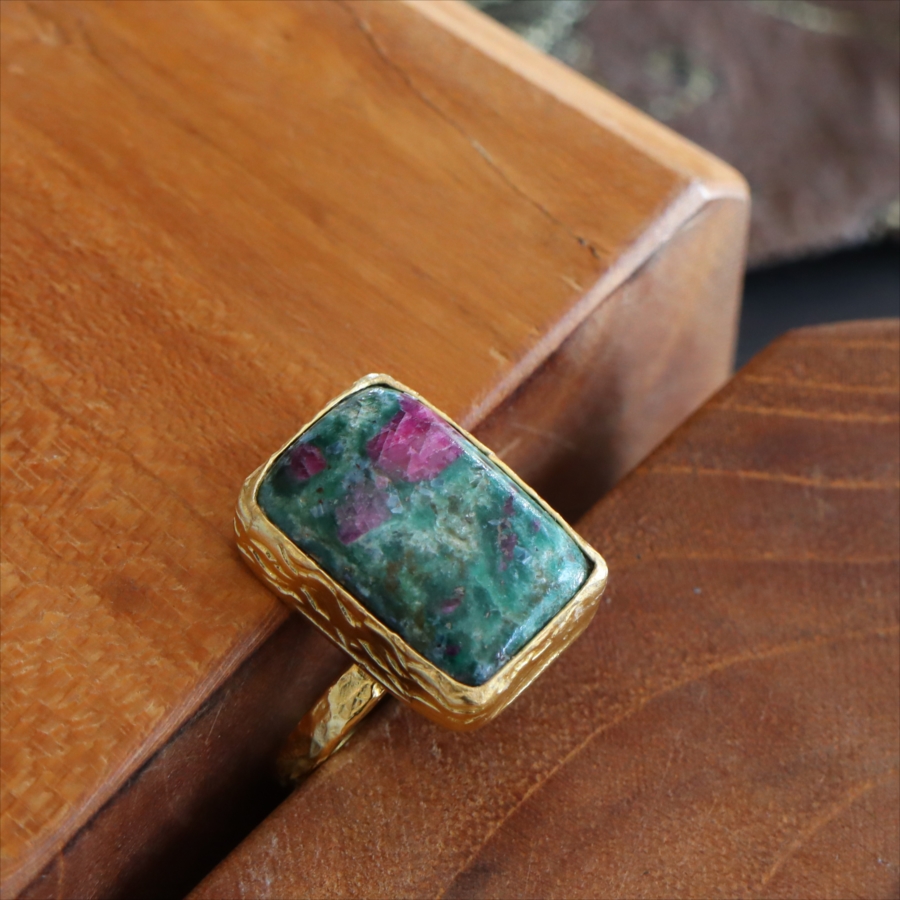 5. ルビーインゾイサイト リング アルサメイア 天然石 22kゴールドプレーテッド トルコジュエリー カラーストーン