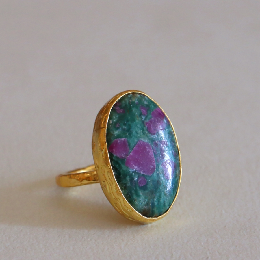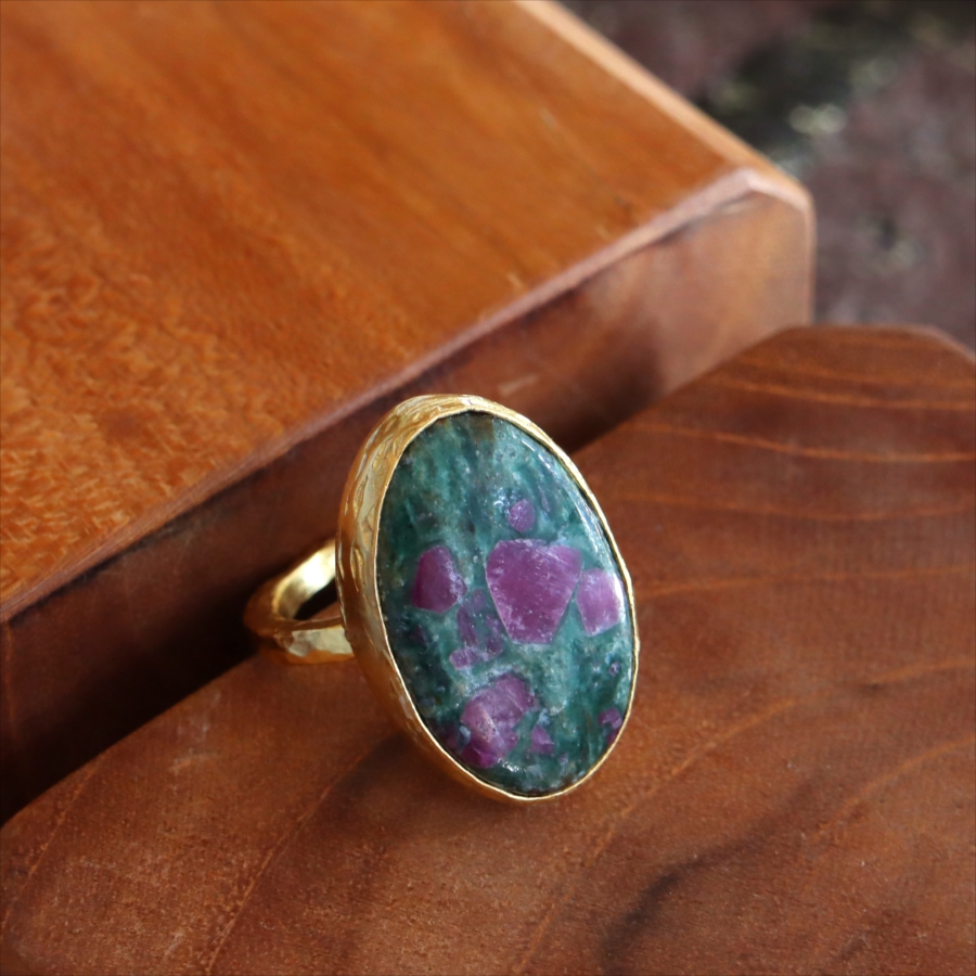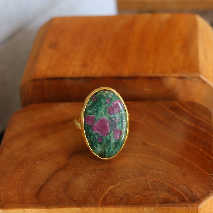 ルビーインゾイサイト リング アルサメイア 天然石 22kゴールドプレーテッド トルコジュエリー カラーストーン
