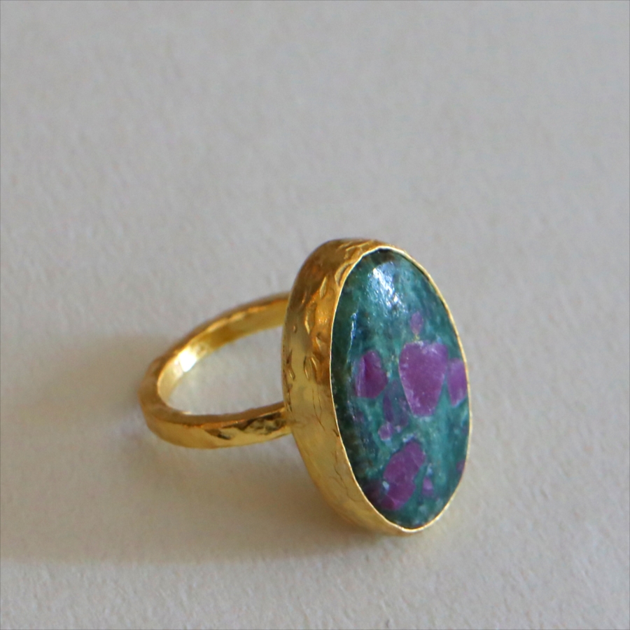 5. ルビーインゾイサイト リング アルサメイア 天然石 22kゴールドプレーテッド トルコジュエリー カラーストーン