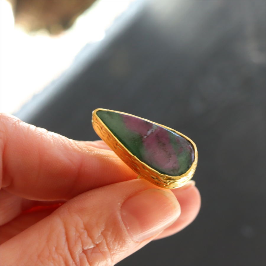 5. ルビーインゾイサイト リング アルサメイア 天然石 22kゴールドプレーテッド トルコジュエリー カラーストーン