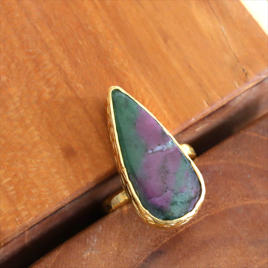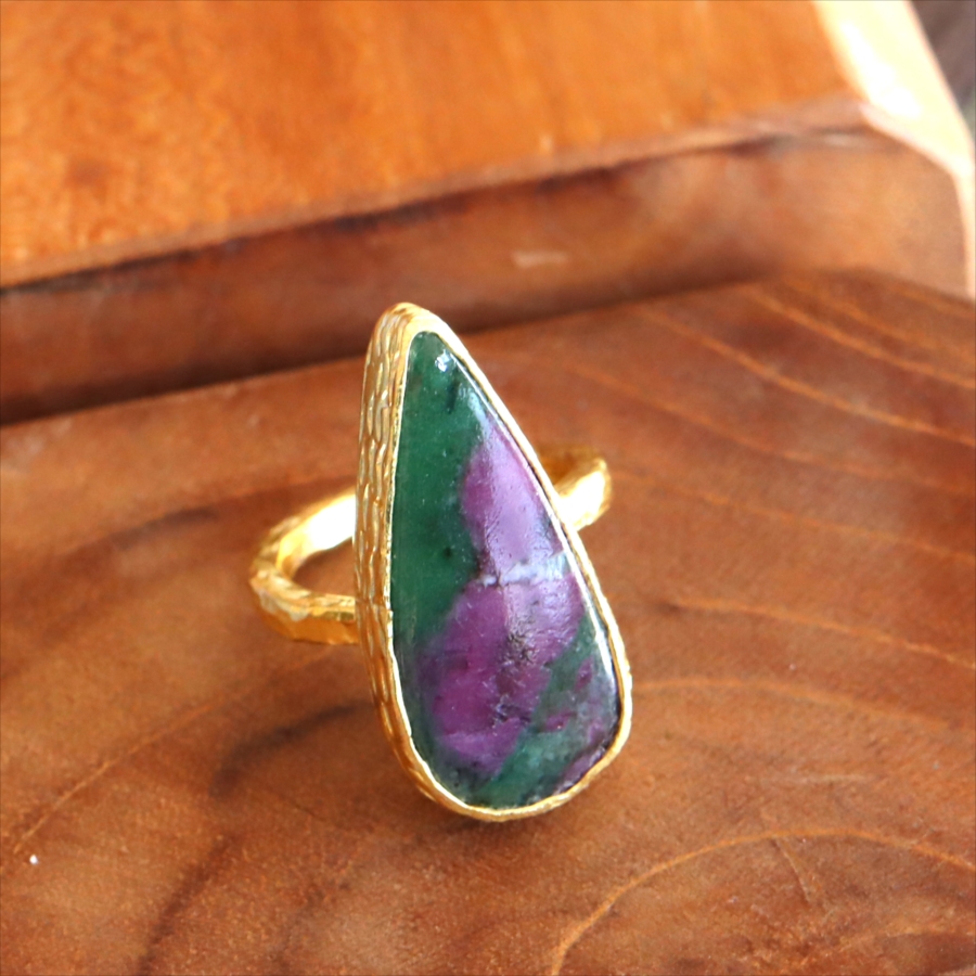 ルビーインゾイサイト リング アルサメイア 天然石 22kゴールドプレーテッド トルコジュエリー カラーストーン