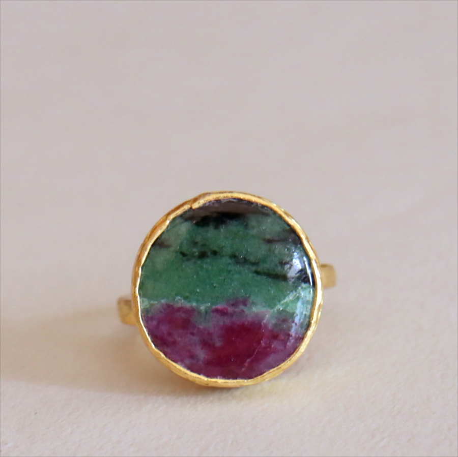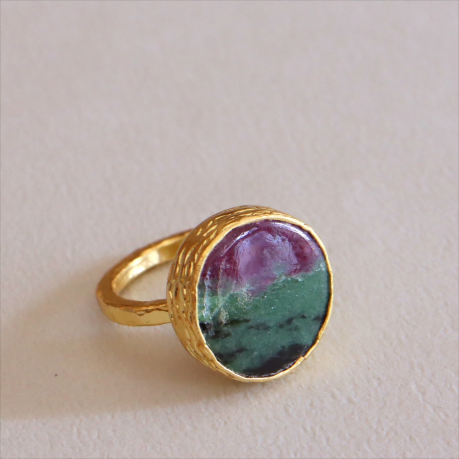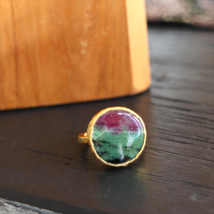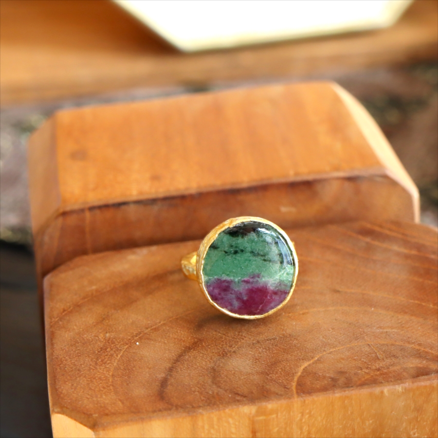 ルビーインゾイサイト リング アルサメイア 天然石 22kゴールドプレーテッド トルコジュエリー カラーストーン