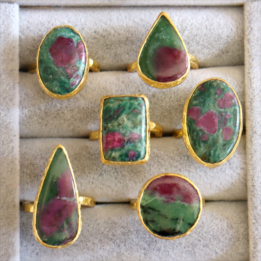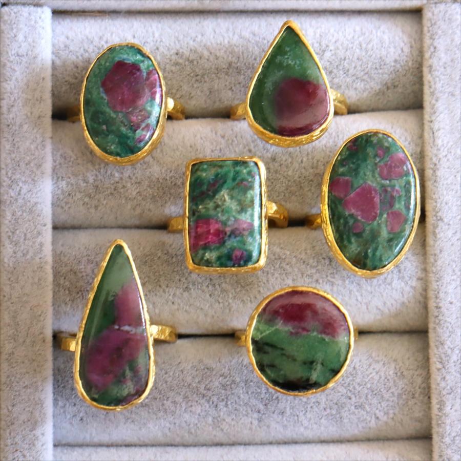 5. ルビーインゾイサイト リング アルサメイア 天然石 22kゴールドプレーテッド トルコジュエリー カラーストーン