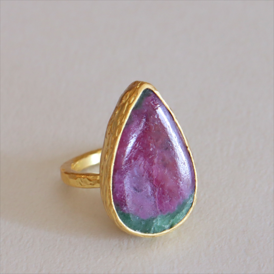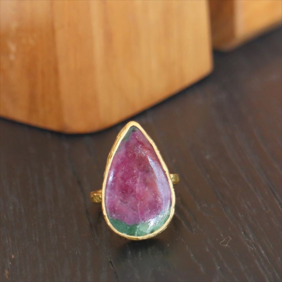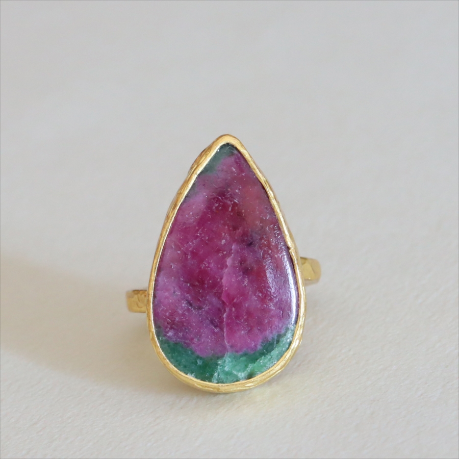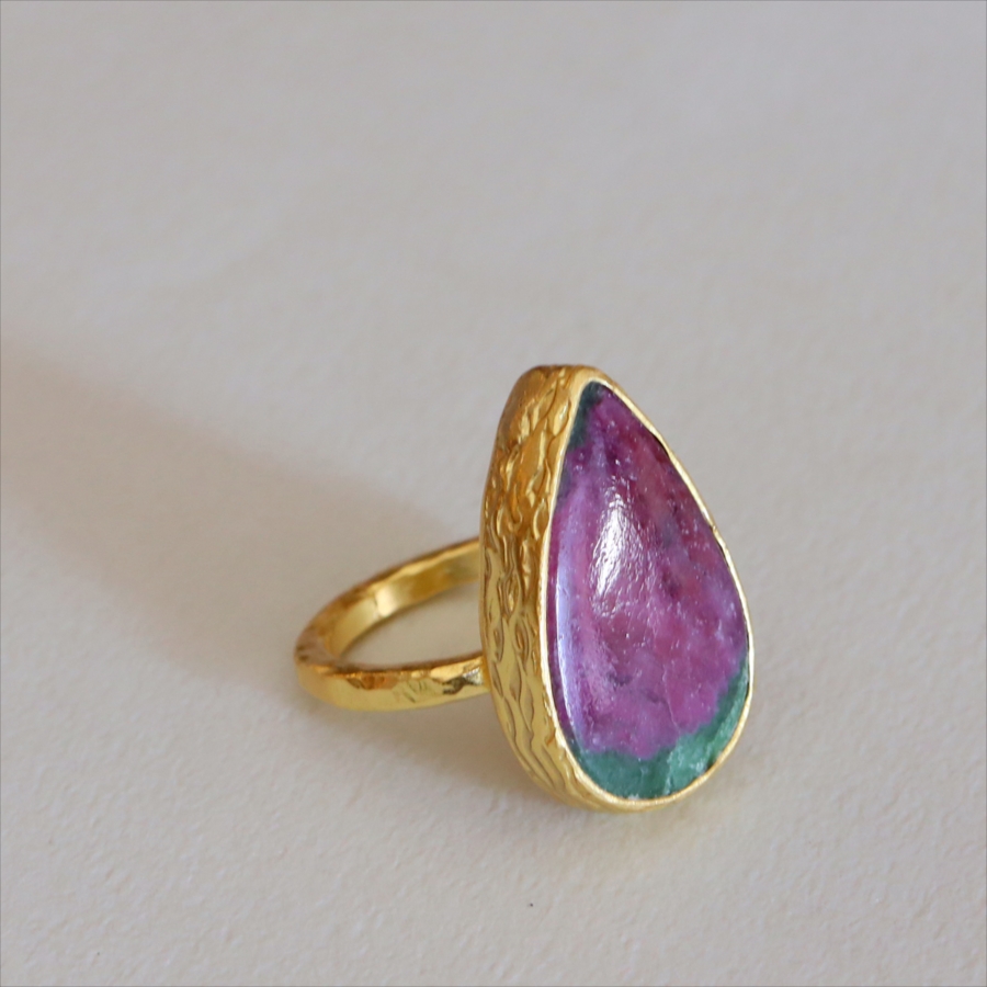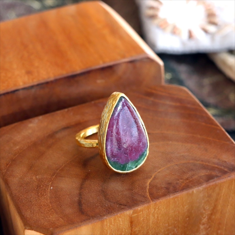 ルビーインゾイサイト リング アルサメイア 天然石 22kゴールドプレーテッド トルコジュエリー カラーストーン