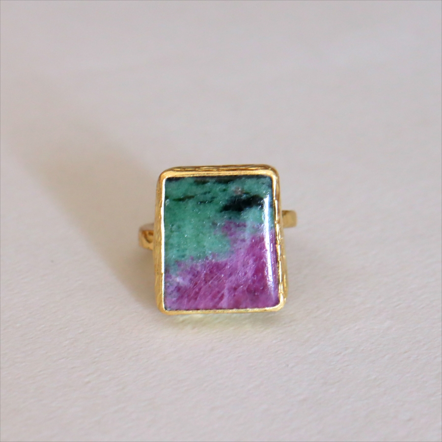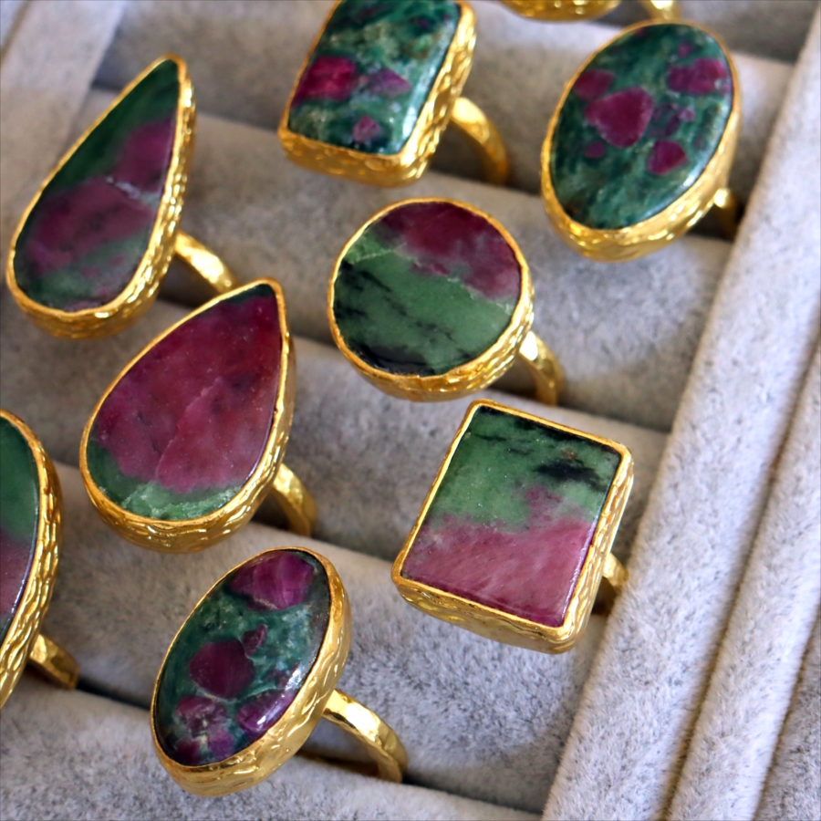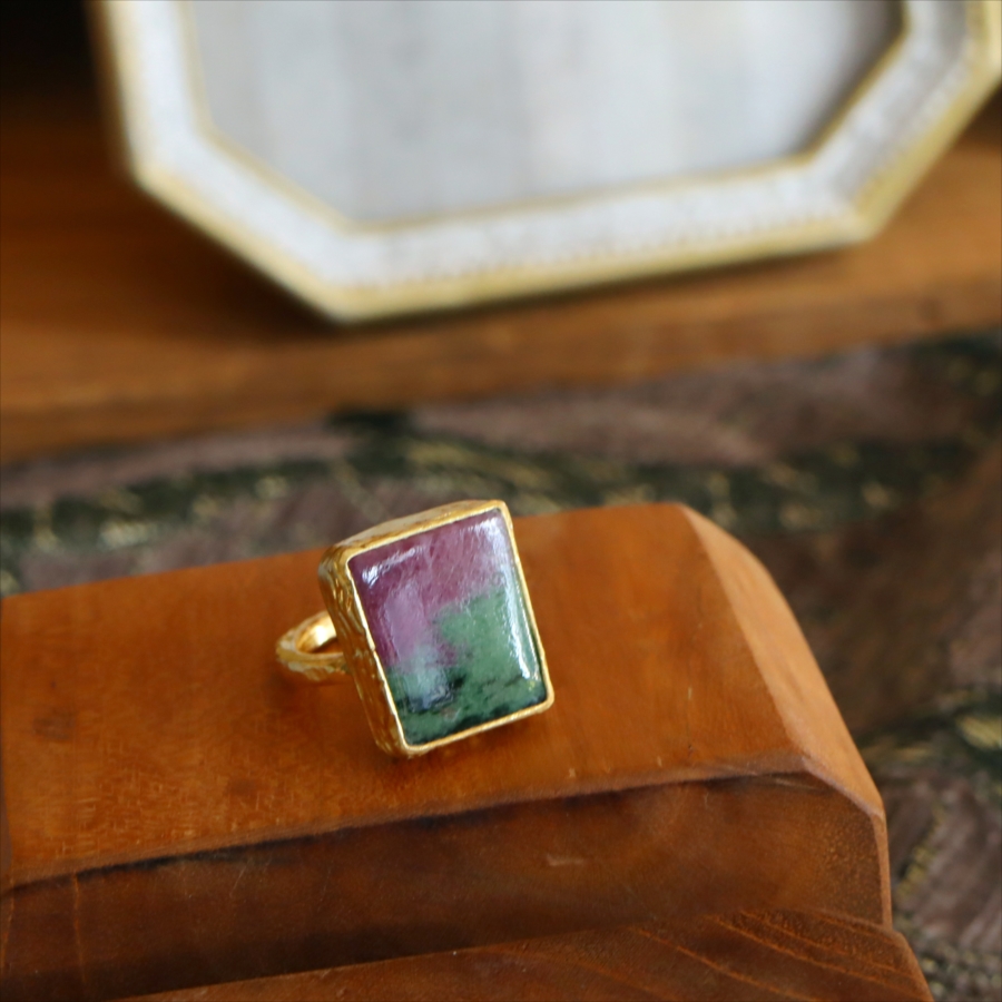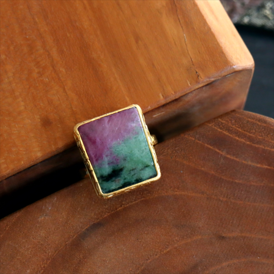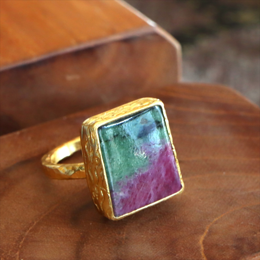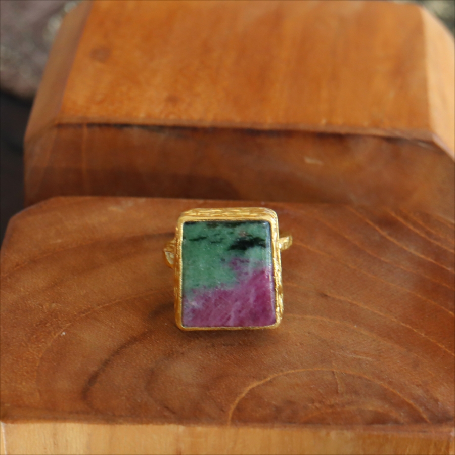 ルビーインゾイサイト リング アルサメイア 天然石 22kゴールドプレーテッド トルコジュエリー カラーストーン