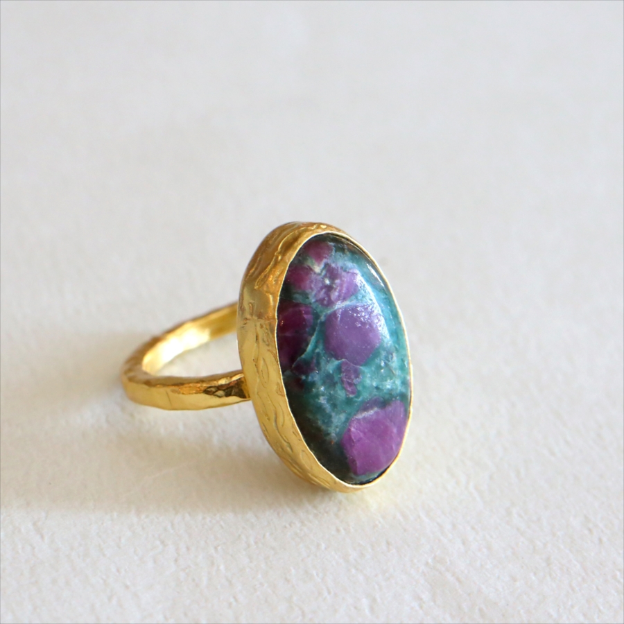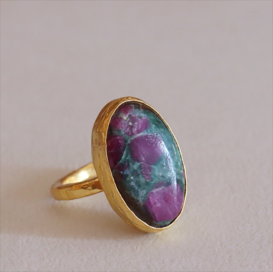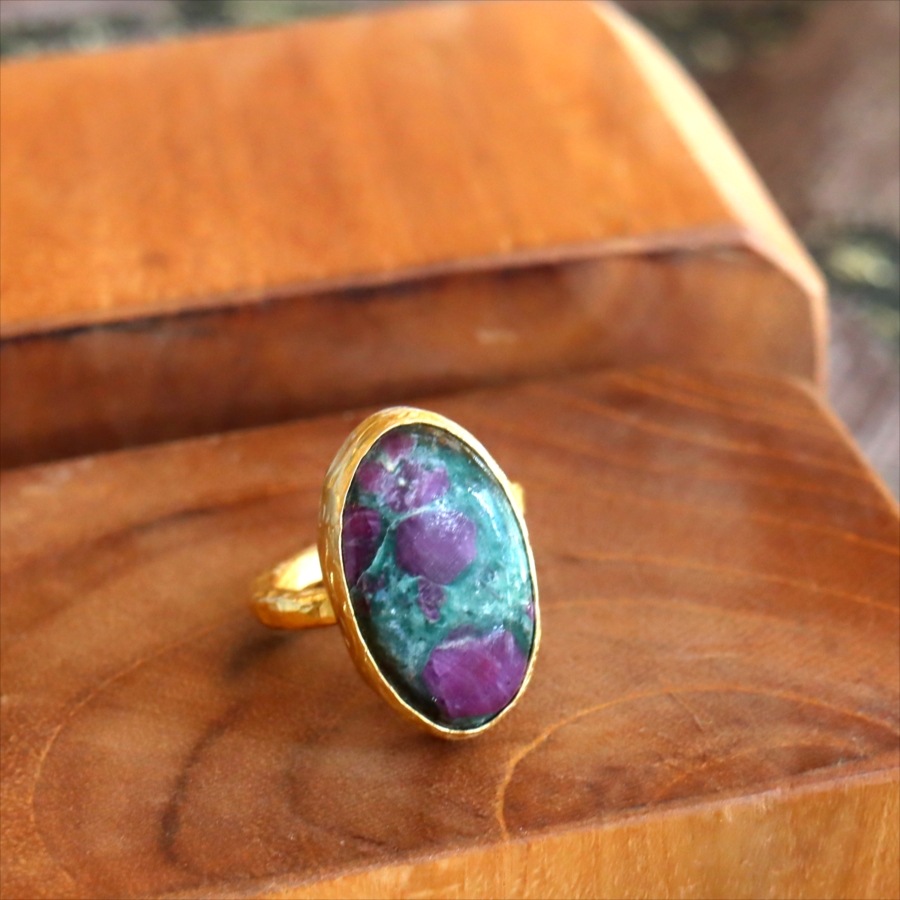 ルビーインゾイサイト リング アルサメイア 天然石 22kゴールドプレーテッド トルコジュエリー カラーストーン