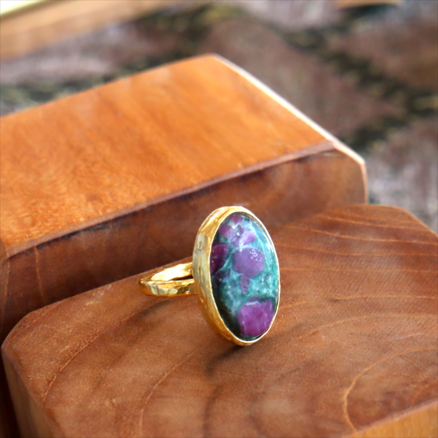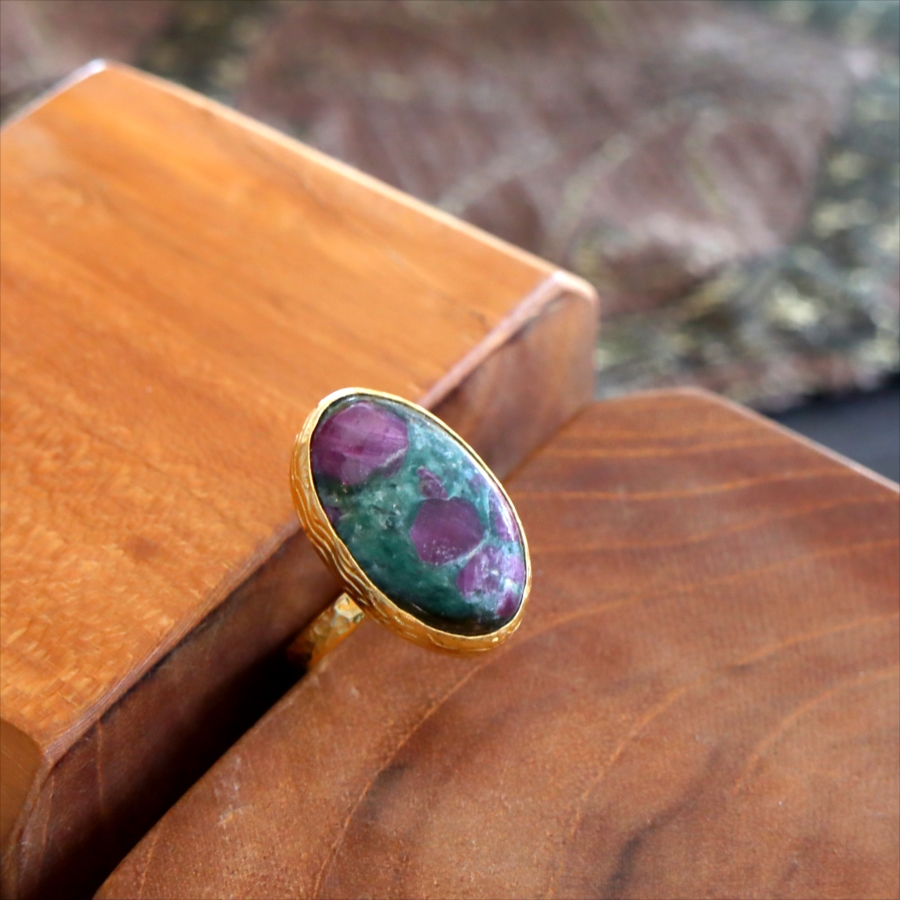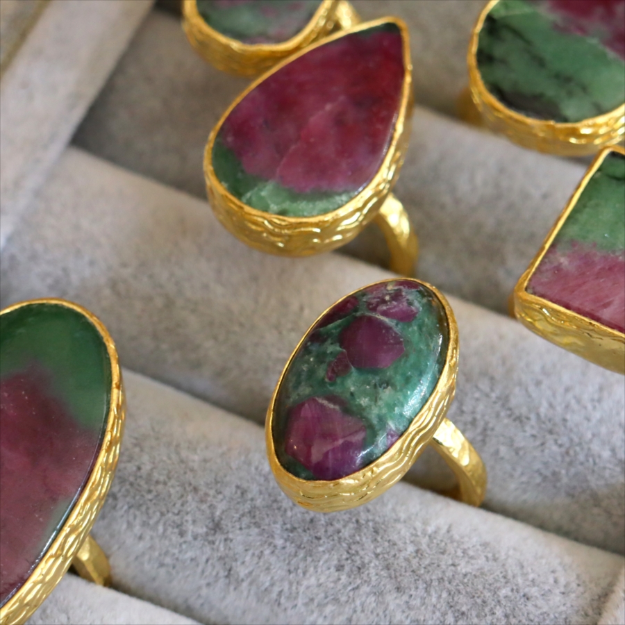 5. ルビーインゾイサイト リング アルサメイア 天然石 22kゴールドプレーテッド トルコジュエリー カラーストーン