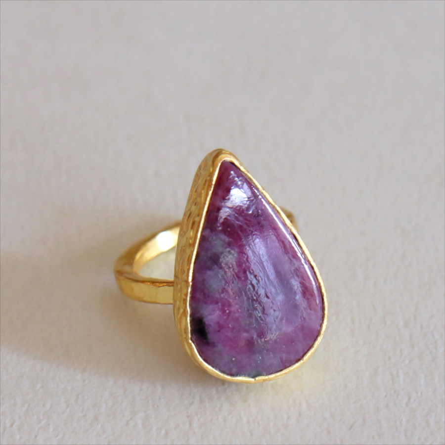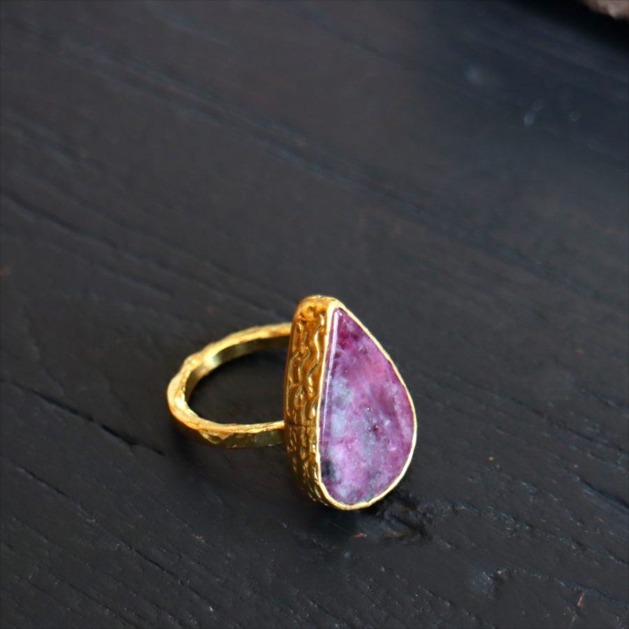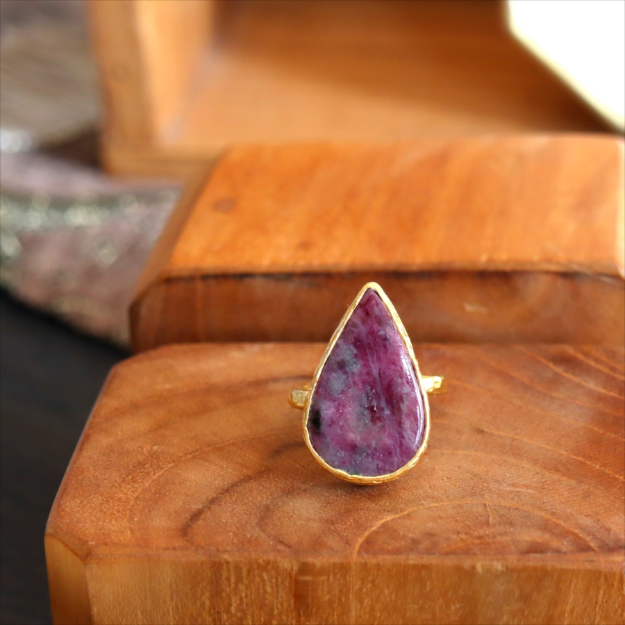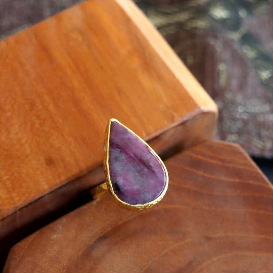 ルビーインゾイサイト リング アルサメイア 天然石 22kゴールドプレーテッド トルコジュエリー カラーストーン