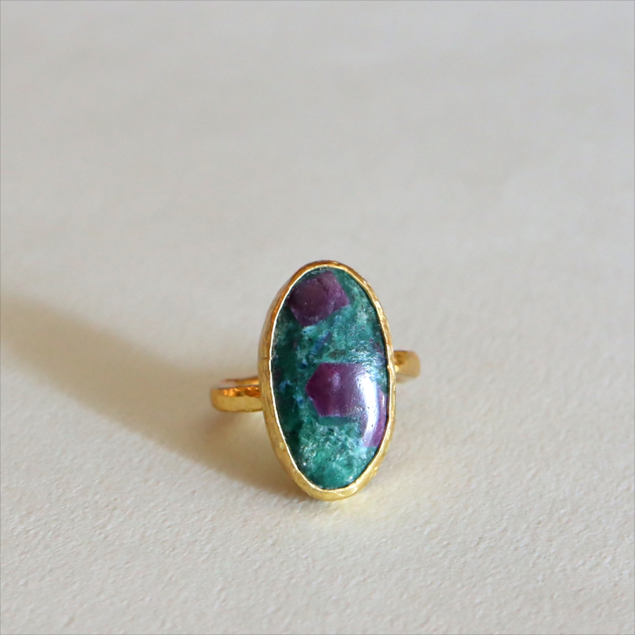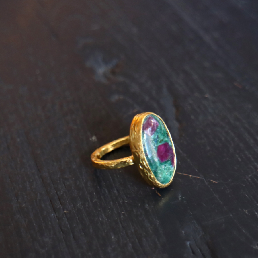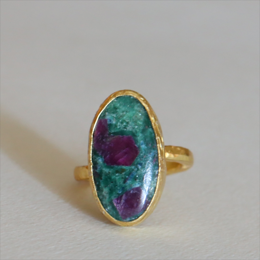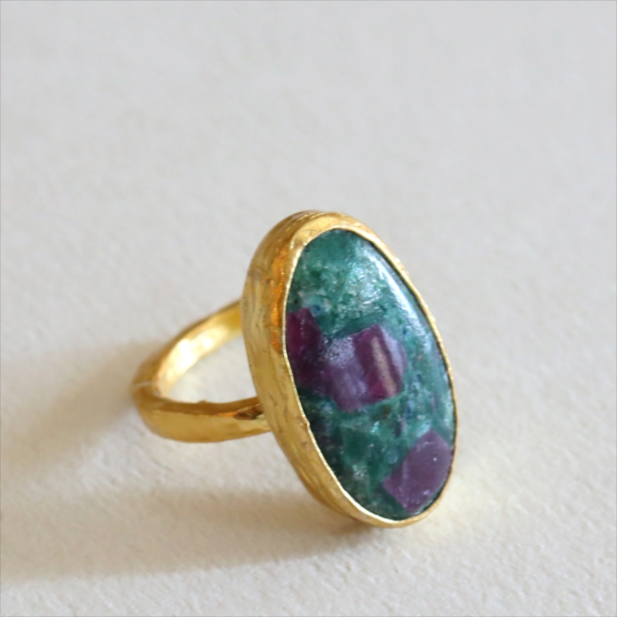ルビーインゾイサイト リング アルサメイア 天然石 22kゴールドプレーテッド トルコジュエリー カラーストーン
