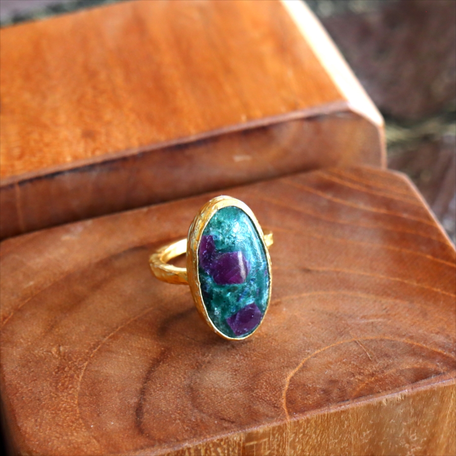 5. ルビーインゾイサイト リング アルサメイア 天然石 22kゴールドプレーテッド トルコジュエリー カラーストーン