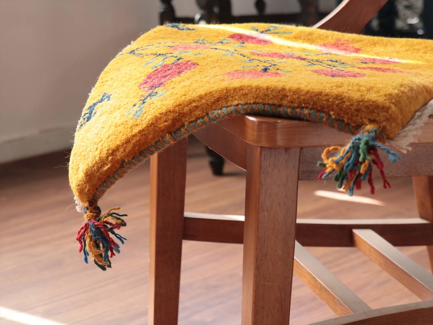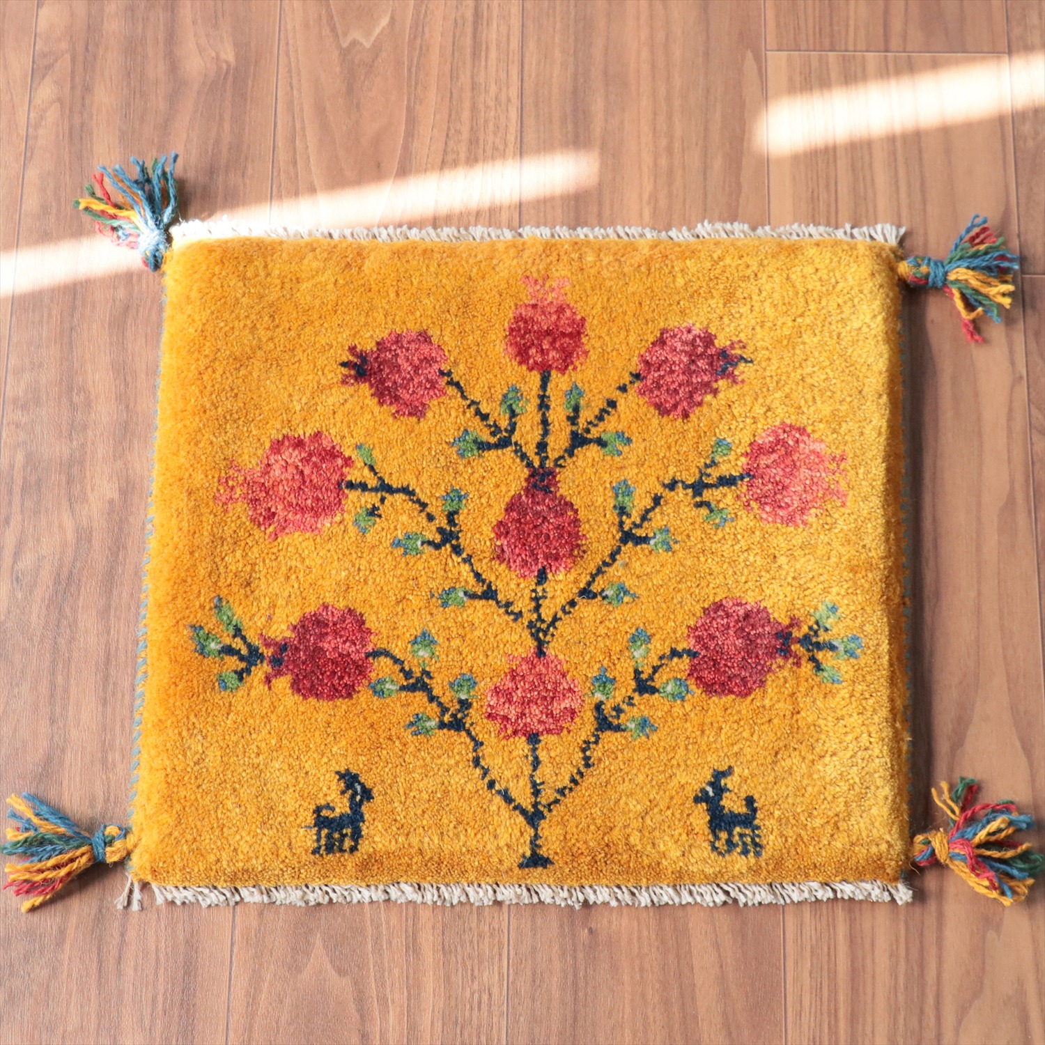 - ギャッベ イラン産手織り 座布団サイズ 39x43cm イエロー ザクロの実