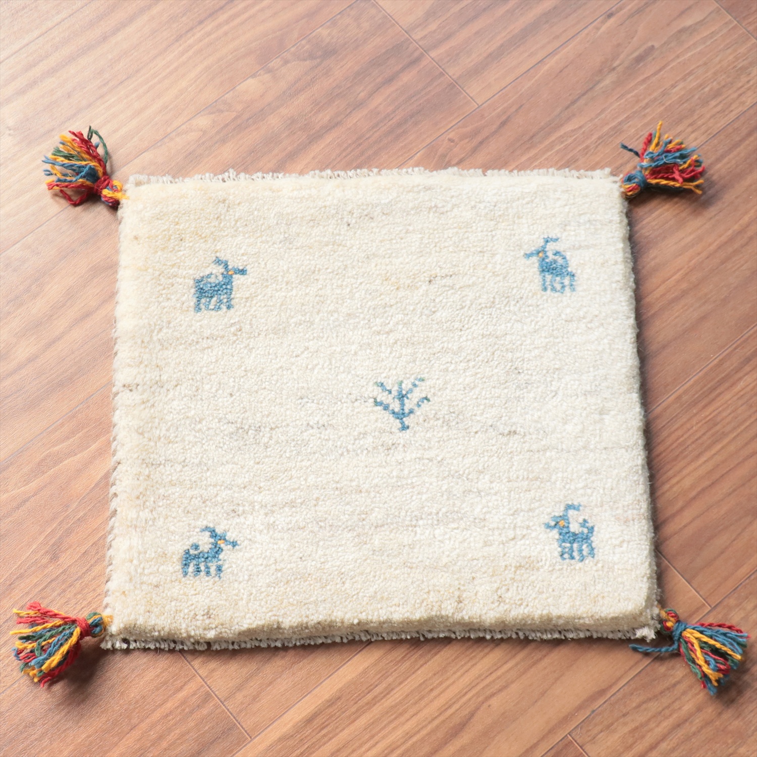 ギャッベ イラン産手織り 座布団サイズ 40x43cm ナチュラルアイボリー 無地 シンプル