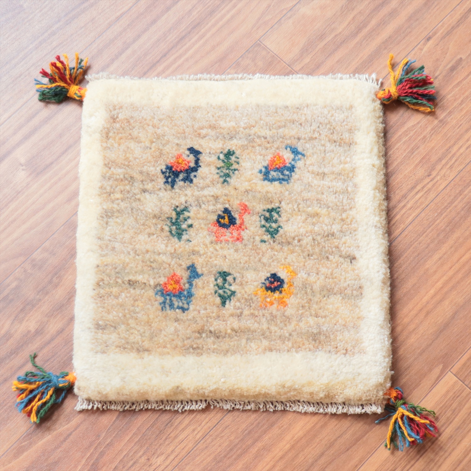 ギャッベ イラン産手織り 座布団サイズ 41x38cm アイボリー ベージュブラウン ラクダ