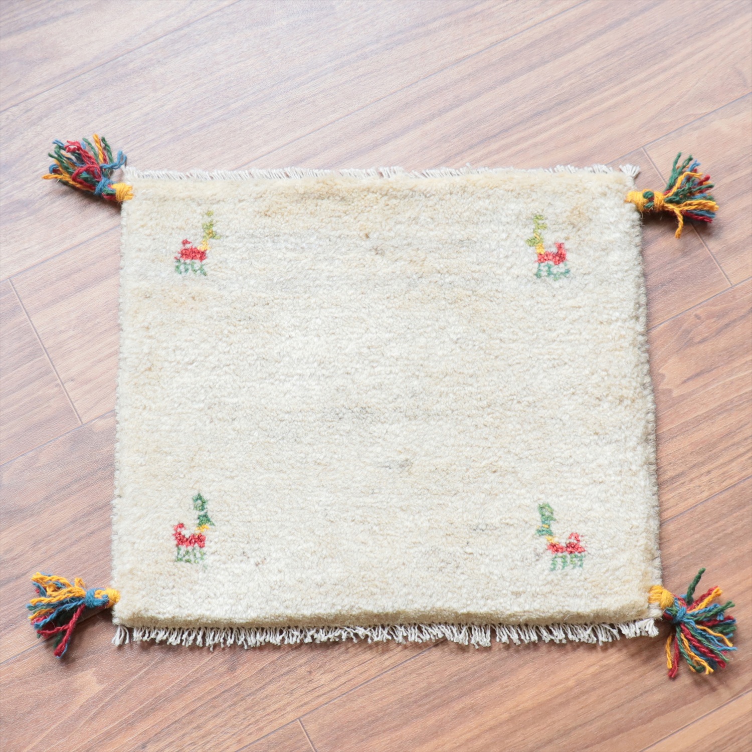 ギャッベ イラン産手織り 座布団サイズ 40x45cm ナチュラルアイボリー 無地 シンプル