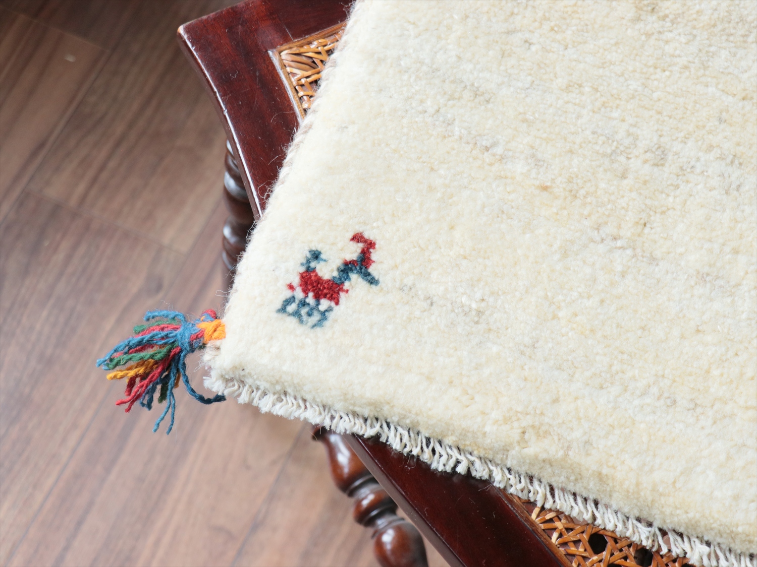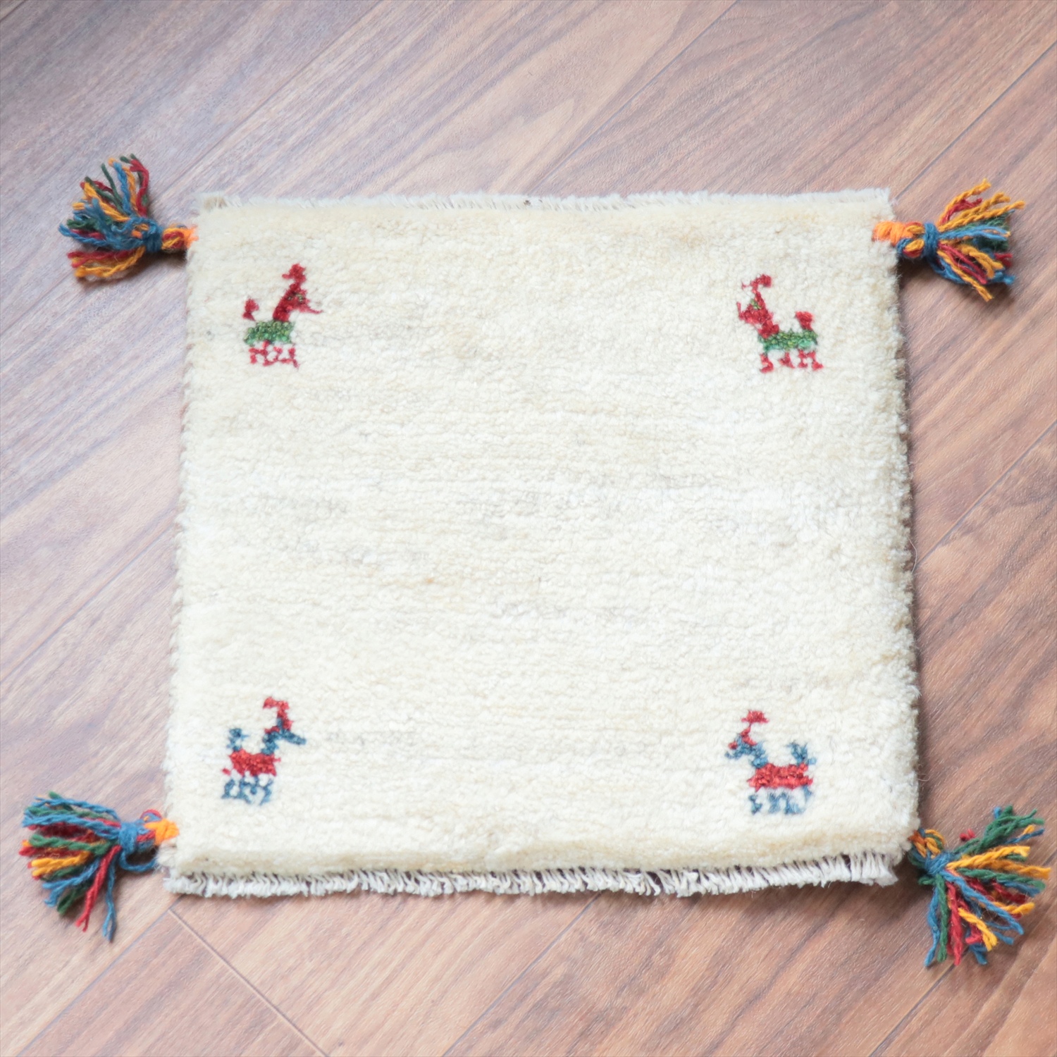ギャッベ イラン産手織り 座布団サイズ 38x39cm ナチュラルアイボリー 無地 シンプル
