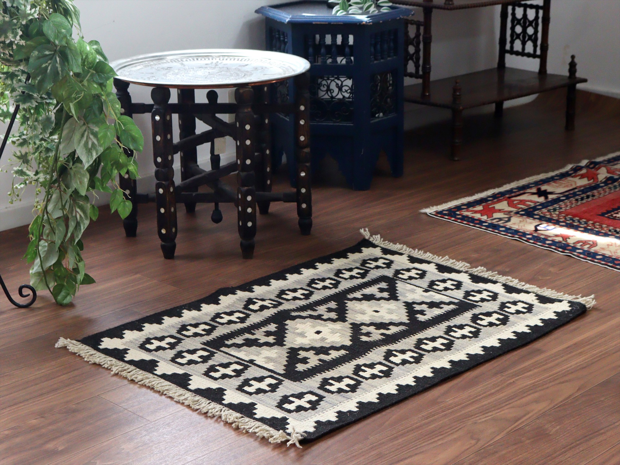 タグ:#玄関マットにおすすめキリム #染めていないモノトーンキリム #近いサイズのラグ #同じエリアのラグ