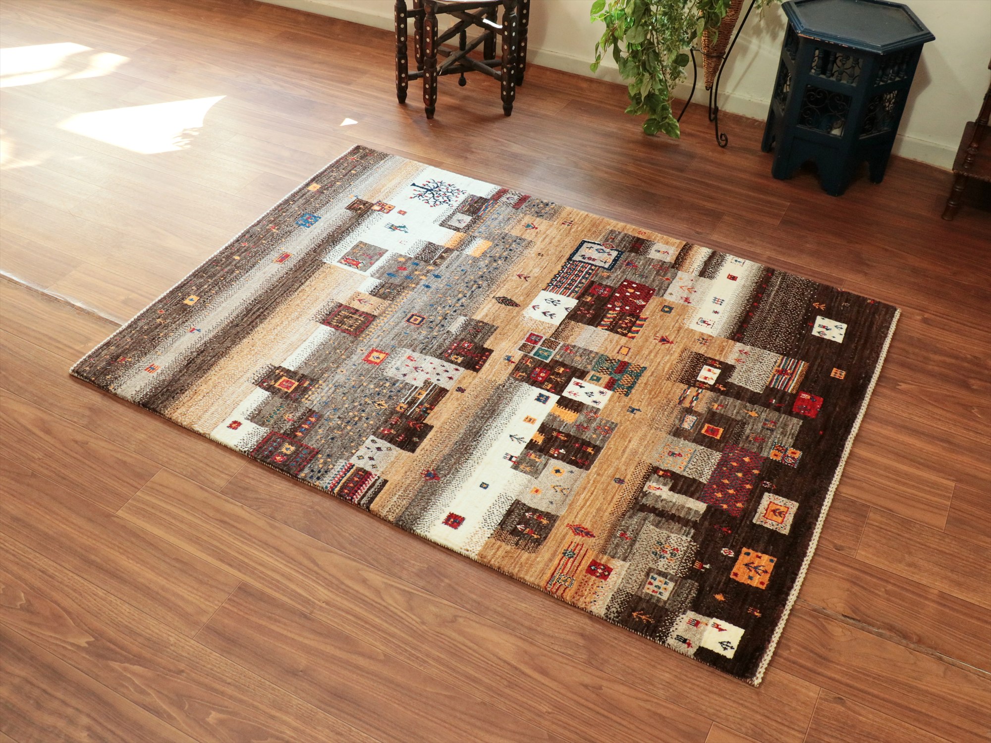 ギャッベ Nowbaft ノウバフト 手織り イラン産ラグ 171x121cm 無染色モノトーン モザイクパターン