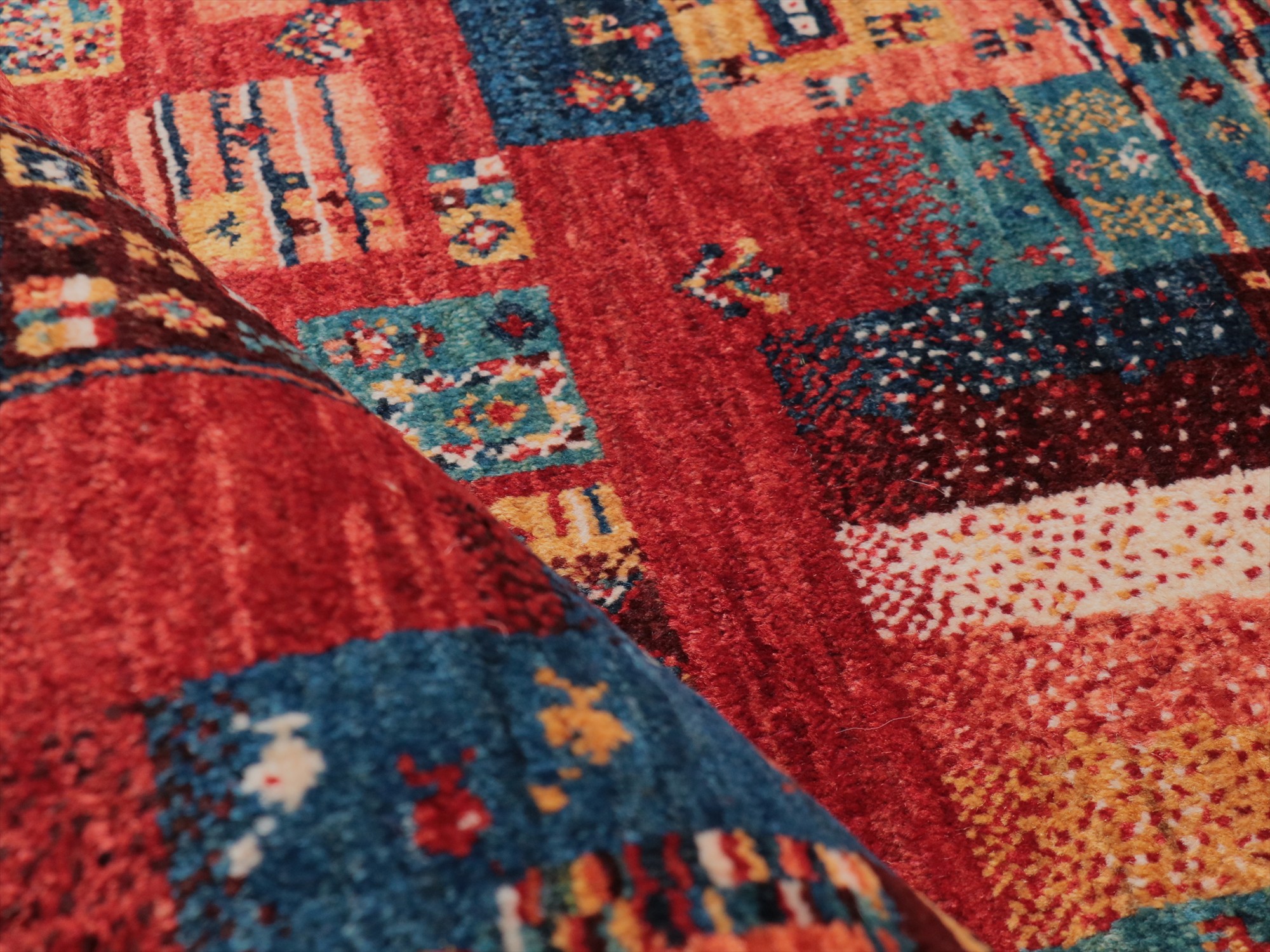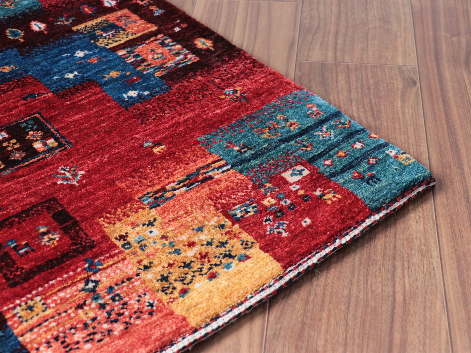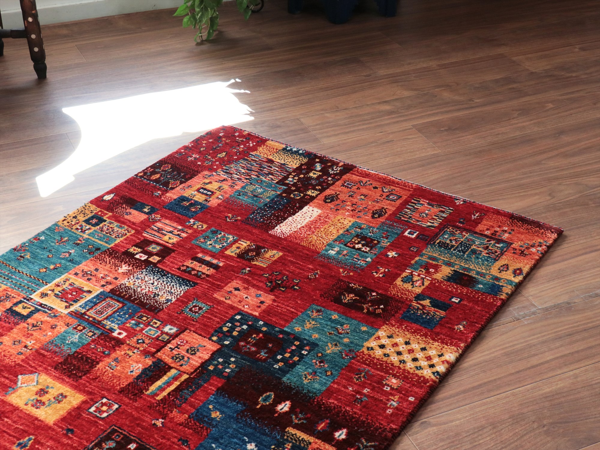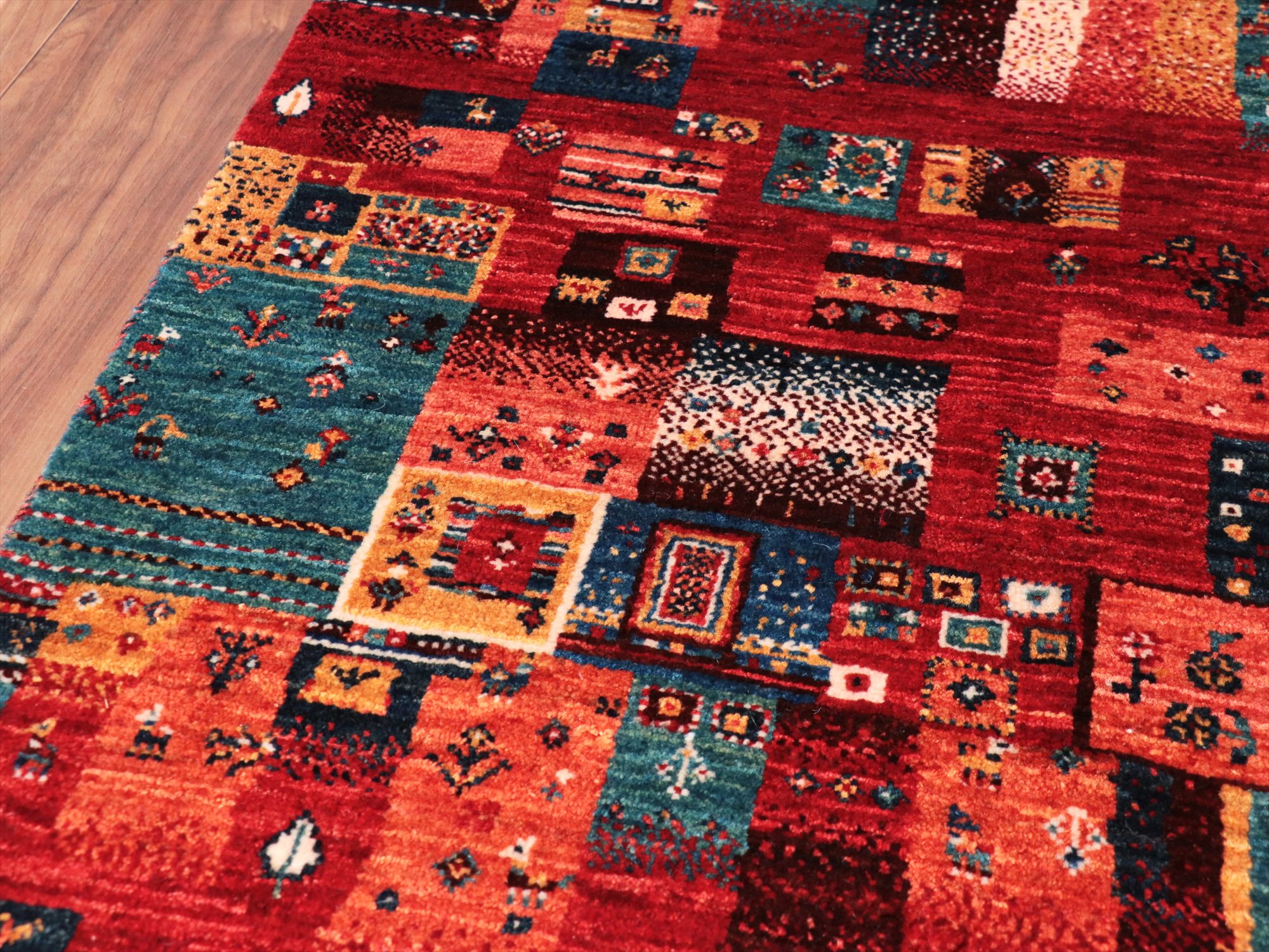 Key:Gabbeh,Nowbaft,Tribal rug, Persian carpet,Iran,Shiraz, Quashkai,Farhadian, 手織りギャッベ, 細かい, イラン直輸入, ペルシャ絨毯, 玄関マット, レッド系, 赤, カラフル, タイル柄, モザイク, 動物モチーフ, モダンデザイン, 草木染, ウール100%, ガラタバザール, 東京, 中野区