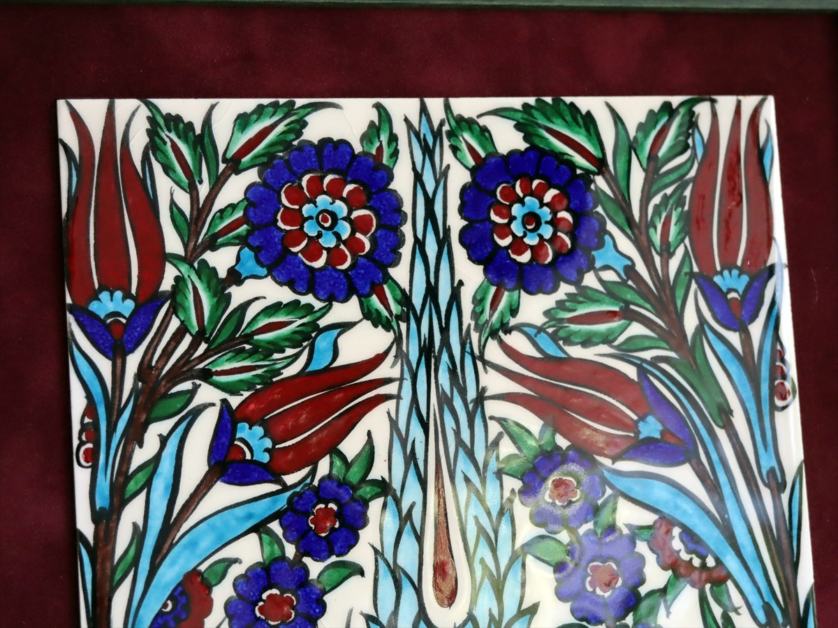 Key:タイル トルコ 陶器 イズニック キュタフヤ 手書き ハンドメイド パネル 額 インテリア 壁 ディスプレイ Iznik Tile Turkish Hand paint Handmade Ottoman Blue Mosque Kutahya