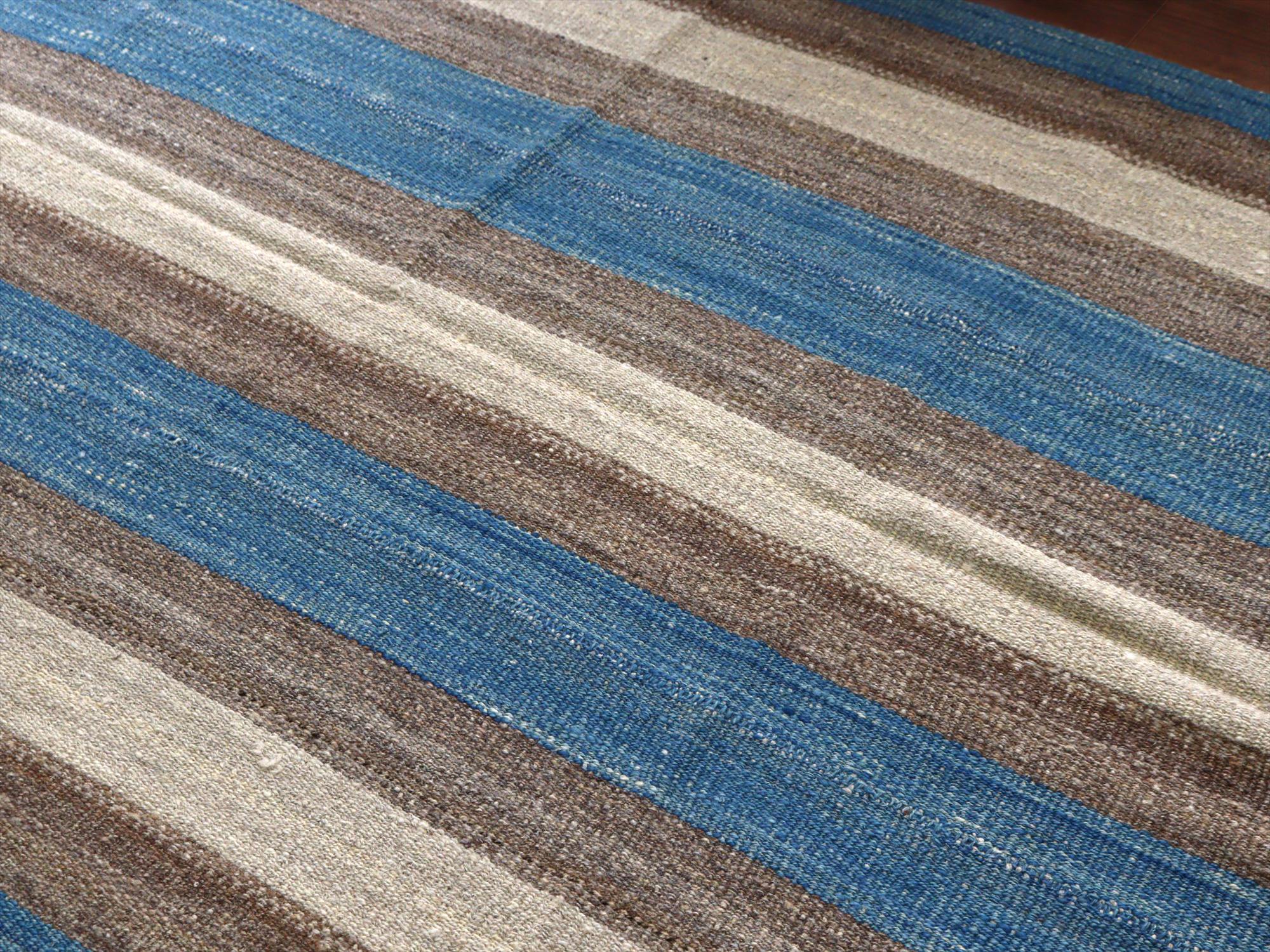 トルコ北東部、カルス地方で織られたキリム。アイボリーとブラウン、グレーの組み合わせで、ストライプが表現されたシンプルなデザイン。
