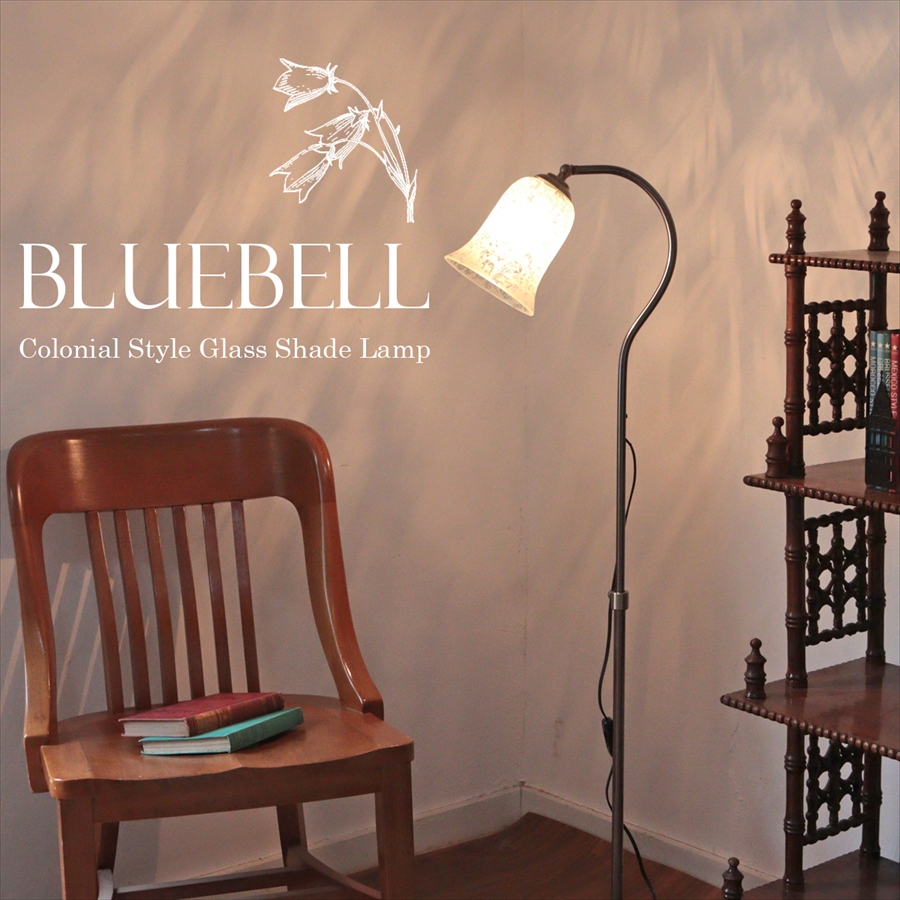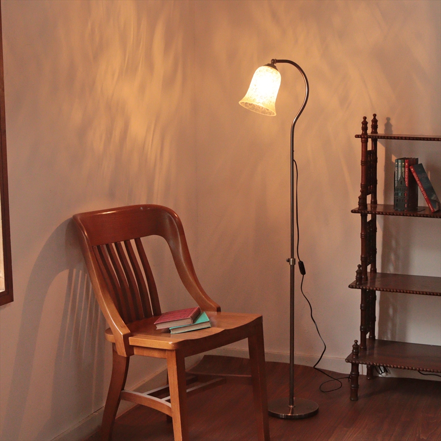 - フロアスタンドライト ガラスシェード ランプ 1灯 ブルーベル グラビュール 高さ調節可能