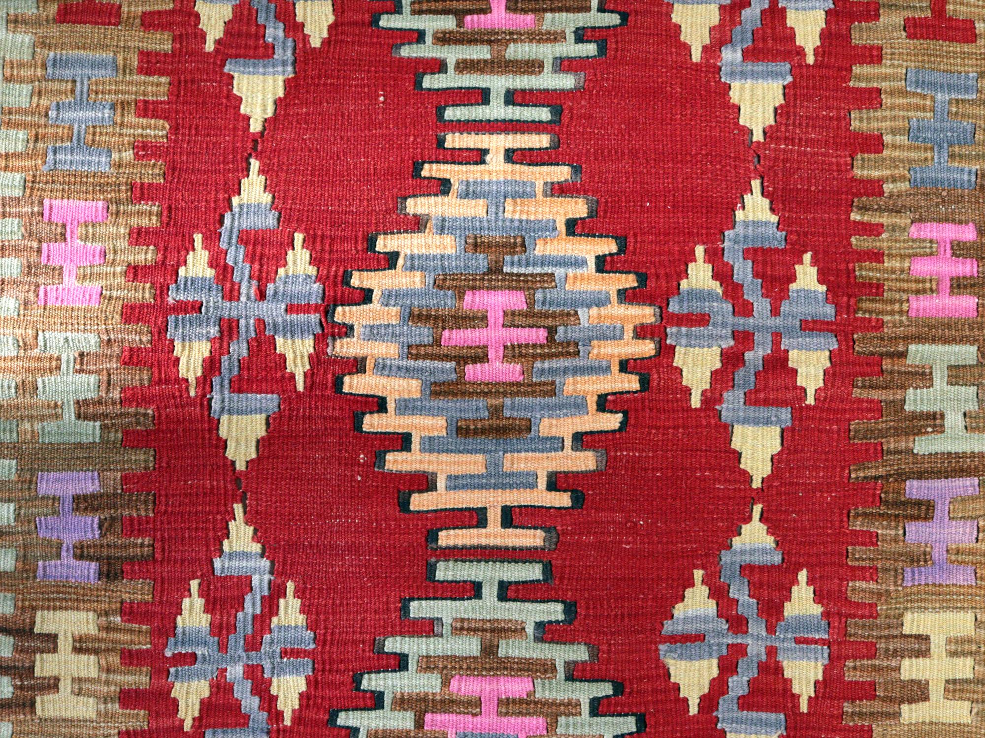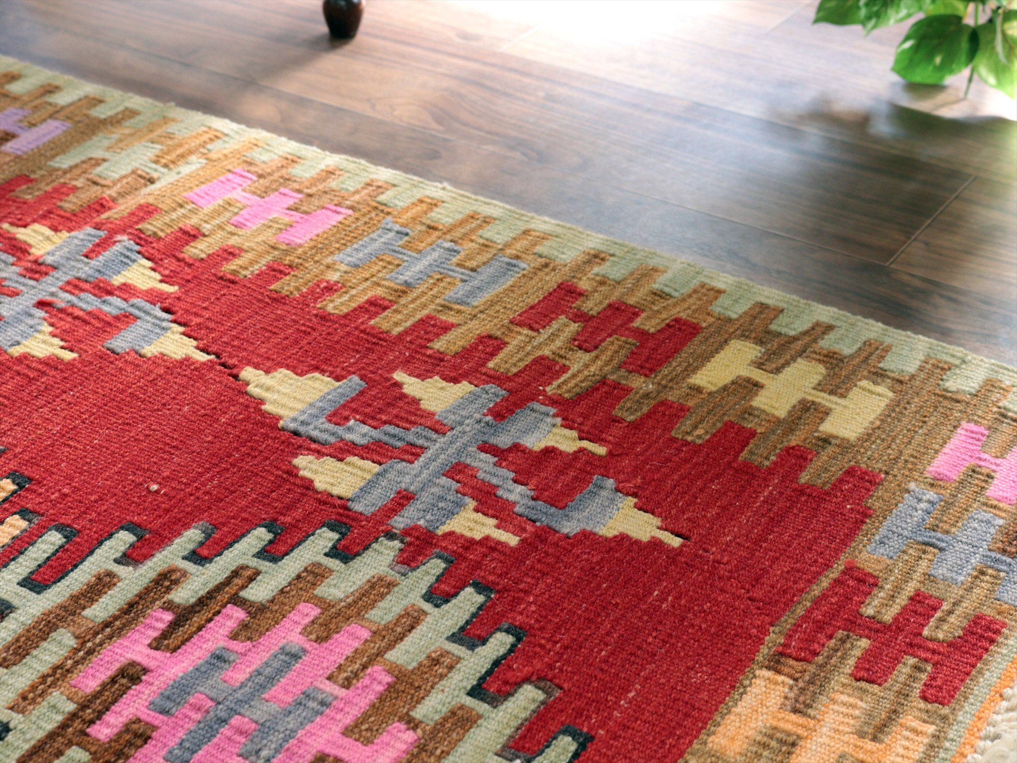 ワンランク上のカイセリキリム137×98cm レッド&ブラウン トルコの手織りキリム